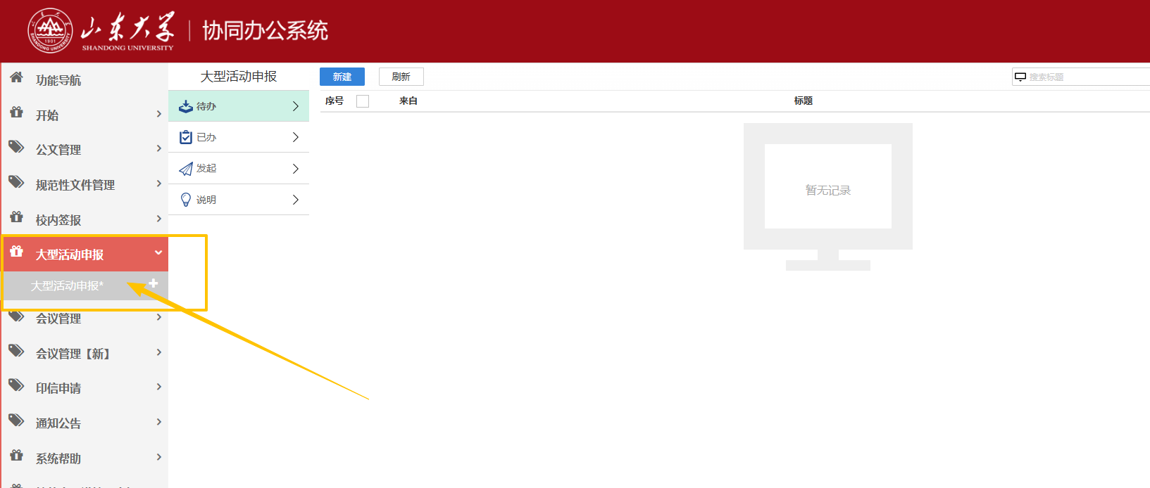 大型活动仍然按照《十大买球的正规网站大型活动管理办法》要求,通过OA系统“大型活动申报”申请。(大型活动指的是在校内举办的每场次预计参加人数达到 500 人以上,或有校外人员参加的每场次预计参加人数达到 100 人以上的各类活动)