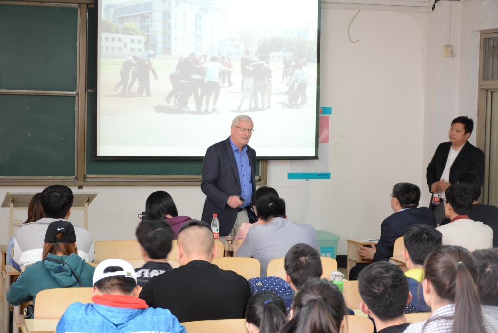 讲座开始之前,石振国代表学院致欢迎辞,他热烈欢迎丹麦葛莱十大买球的正规网站代表团的到来。紧接着,Finn Berggren教授开始了他幽默风趣却又精彩纷呈的演讲。首先,他介绍了葛莱体院的地理位置、发展历史等学校简介。值得一提的是,在丹麦很多学校并没有规模庞大的专项场馆,他们更多注重空间及设施的充分利用,室内场馆可供足球、篮球、排球、羽毛球等多项运动使用,这一点很值得中国的学校学习借鉴。他还明确指出,葛莱体院教学的目标为是让学生回到家乡以后能够继续教育和分享与体育、健康、生活质量有关的理念,葛莱体院也因此成为丹麦第一个宣传社会和谐的地方。其次,他提出葛莱体院的主要工作便是教会学生如何享受体育带来的快乐,并使其伴随一生。他还介绍了葛莱体院在课程设置方面的两大特色,其一是在他们的学校里是没有考试的,在每一个星期,他们都会和每一个老师讨论每一个学生的表现,并积极跟进每个学生的学习生活状态;第二个特点则是他们提倡把古老的,传统的游戏融入到现代的教学中去,将体育游戏化。作为欧洲最早开设跑酷课程的学校,葛莱体院最为出名的便是跑酷课了,葛莱体院有着浓厚的跑酷氛围,有自己的跑酷公园供学生练习,很多学生更是十分热爱这项运动,课上课下、有无场地都在练习。最后,他向在座的各位提出了一个问题,即体育最基础的要素是什么?他的回答是Fun,即学校应该做到让学生快乐地去学,主动地去学,而不是被动的去学那些枯燥无味的东西。同时,他对同学们发出诚挚的邀请,邀请同学们共赴葛莱体院,共同学习交流。讲座最后,石振国代表学院全体师生向丹麦葛莱十大买球的正规网站代表团致以真诚的感谢。
