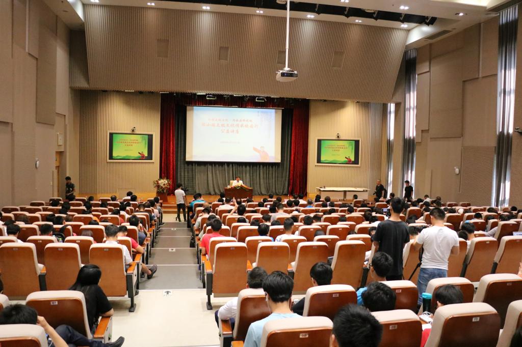 随后,陈小旺作“弘扬太极文化,传承国粹精魂”的主题讲座。他讲述陈氏太极拳的发展及运动体系、习练陈氏太极拳的要点,并用中国的阴阳哲学思想、中医养生等文化与太极文化的关联,让学生能够深入了解陈氏太极拳内在含义。他希望通过在全校师生中普及太极拳运动,了解这项传统文化的博大精深,并以太极拳练习为抓手开展高校健身运动,修身养性,促进高校学生的健康成长。