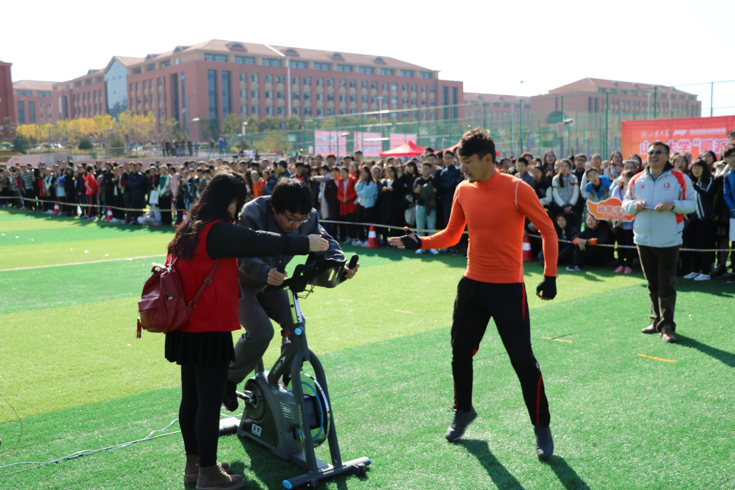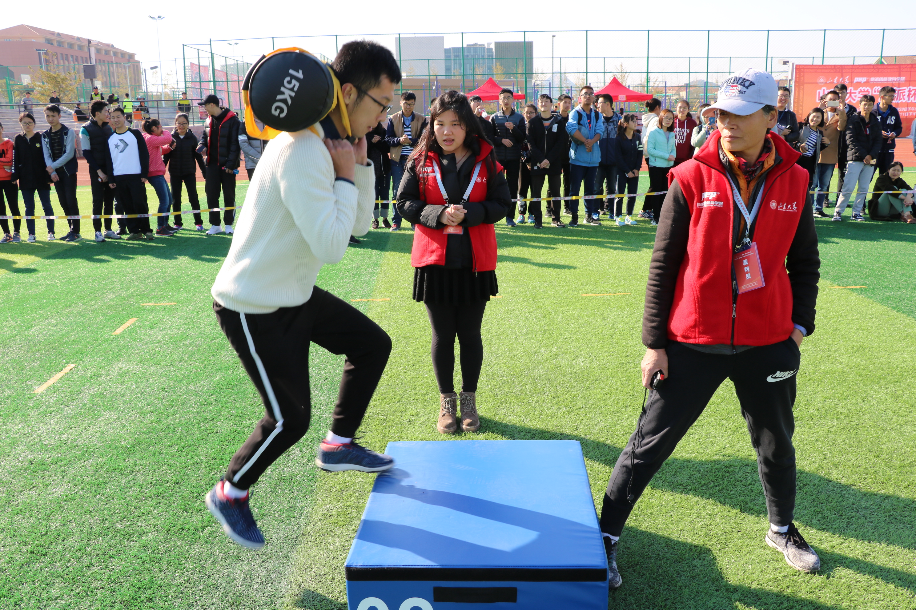 11月4日,十大买球的正规网站“鹏派杯”首届健身体能技能巡回赛青岛校区的比赛成功举行。十大买球的正规网站青岛校区党工委书记孔令栋参加本站比赛的开赛仪式并讲话,十大买球的正规网站副院长黄晓明主持开赛仪式。来自青岛校区的各学院代表队和运动员近700人参加了本次活动。本次比赛是巡回赛经过10月26日和28日济南校区两场比赛的顺利开展后,在全校范围内开展的第三站比赛。