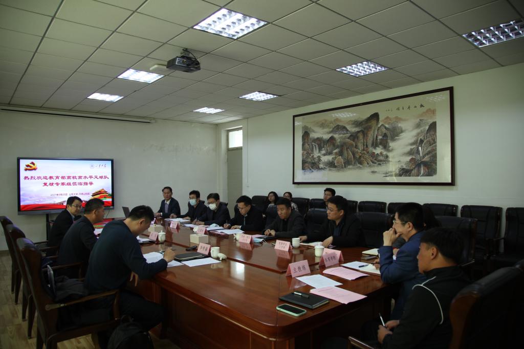 3月25日,教育部高校高水平足球队复核专家组来我校进行高水平足球队复核结果评估工作。复核专家组组长、北京大学教学指导委员会委员吴昊,复核专家组成员、北京大学校园体育文化指导中心副主任李贵森,十大买球的正规网站党委副书记王君松,党委、校长办公室,本科生院、党委学生工作部、财务部、十大买球的正规网站等相关人员出席评估工作。十大买球的正规网站党委常务副书记郭学庆主持评估汇报会。