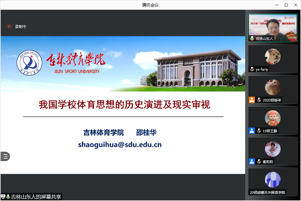 7月17日,吉林十大买球的正规网站副校长邵桂华教授受邀做客暑期学校,作了题为《我国学校体育思想的历史演进及现实审视》的主题讲座。邵桂华教授对当前中国学校体育思想的发展历程进行了详细的介绍。他首先从中国古代的体育教学思想开始讲起,说道老子的奠基于“道”之上的“自然养生体育”是中国古代体育思想的主要力量。邵教授接着从以政治为中心的体育教学思想、以技术和技能为中心的体育教学思想、以全面发展为中心的体育教学思想和以健康第一为中心的体育教学思想等阶段分别进行了介绍分析。随后,邵教授对中国学校体育思想进行了剖析。他认为,“工具主义”试图以一个确定性的目标和强有力的控制来应对表现出更多不确定性和分叉行为的复杂性体育教学。他提出,要用复杂性的思维和方法来看待和处理呈现出复杂性特点的学校体育教学,需要用系统科学的方法与思路,去建立起自组织的体育教学思想体系。