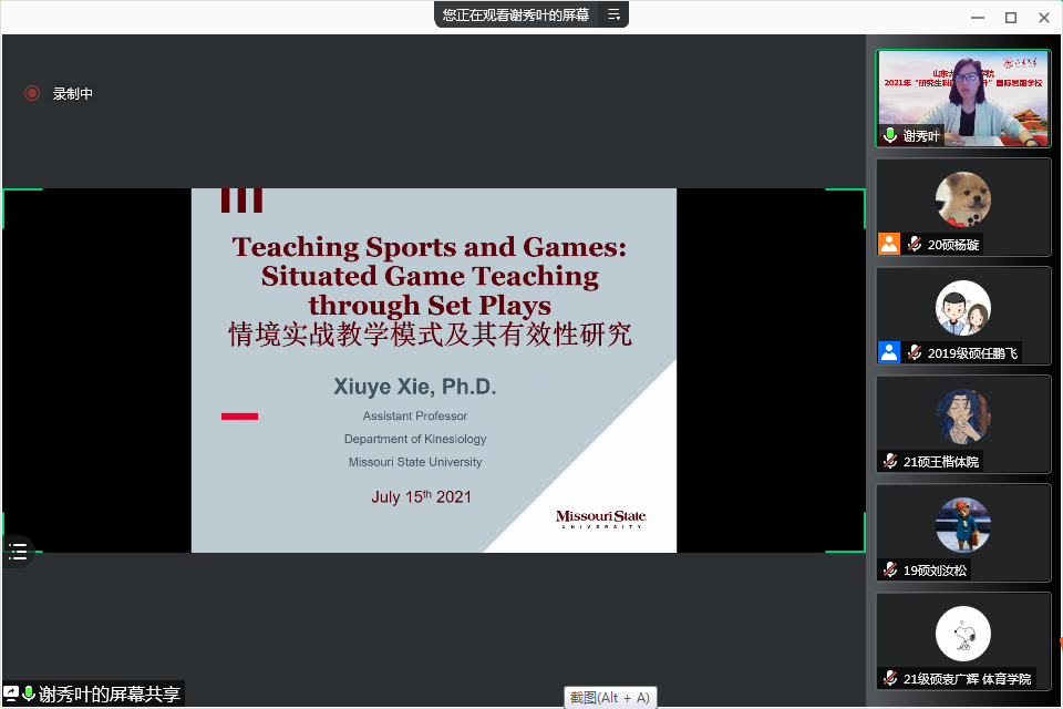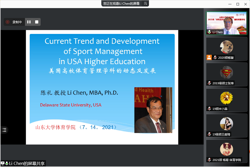 7月19日,十大买球的正规网站举办的“国际视野与研究生科研能力提升”国际暑期学校落下帷幕。本年度暑期学校邀请了10余位国内外知名专家学者,围绕国际交流的现状与未来、体育口述史发展动态、科研选题方法论、美国体育管理学科的现况及未来发展、体育强国建设视域中的我国“十四五”体育改革与发展、情景教学模式及其有效性研究、我国学校体育思想的历史演进及现实审视、身体运动对脑健康和认知功能的促进作用等专题,开展了广泛而深入的学习研讨,旨在进一步提升我校体育学研究生的科研水平,不断拓宽国际研究视野。