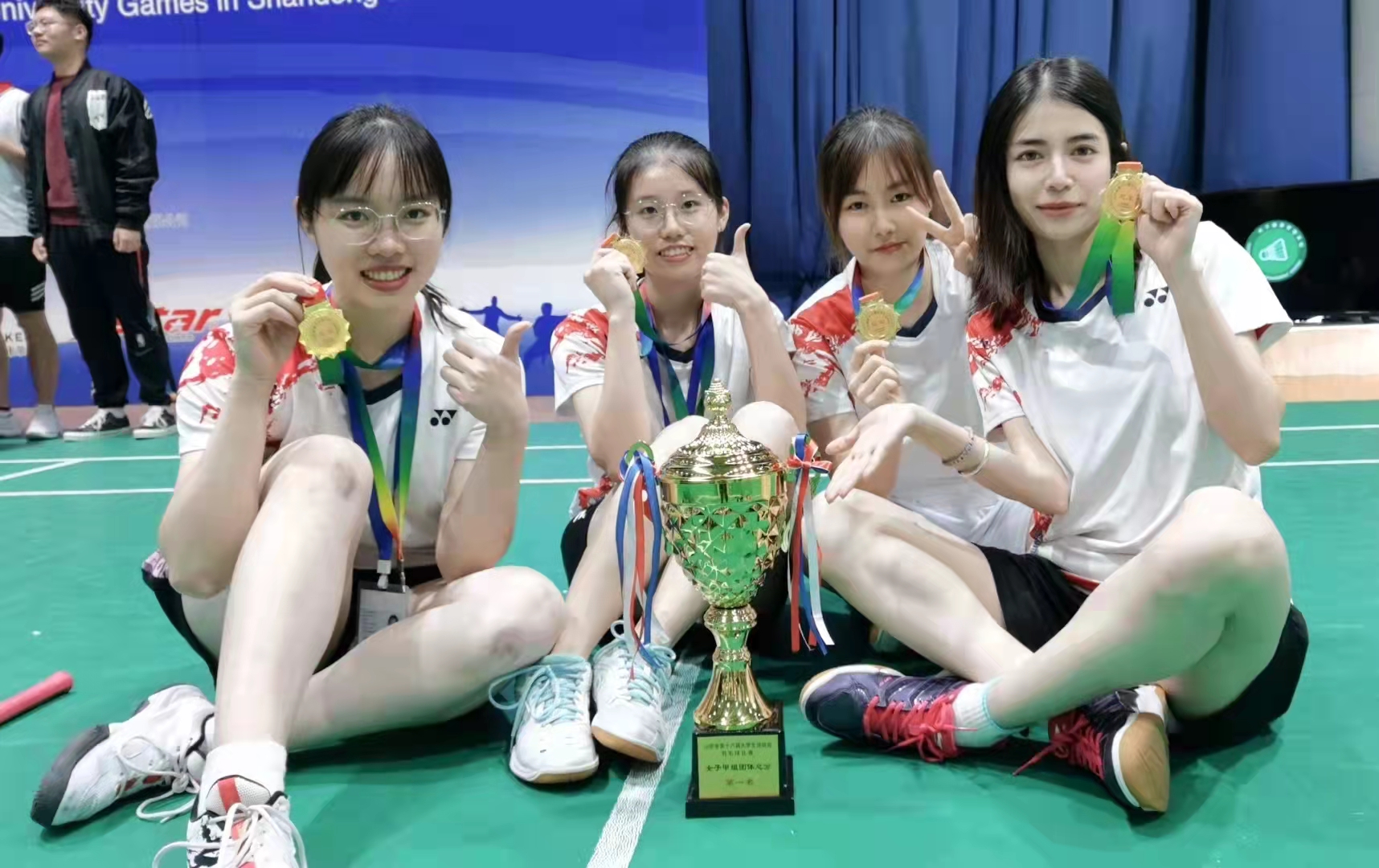 由口腔医学院叶美琳、文学院曾温馨、白逸飞、十大买球的正规网站郭晨宇组成的甲组女将们发挥出色,一路过关斩将,最终战胜上届冠军中国海洋大学代表队,问鼎冠军,这也是十大买球的正规网站首个羽毛球女团冠军。