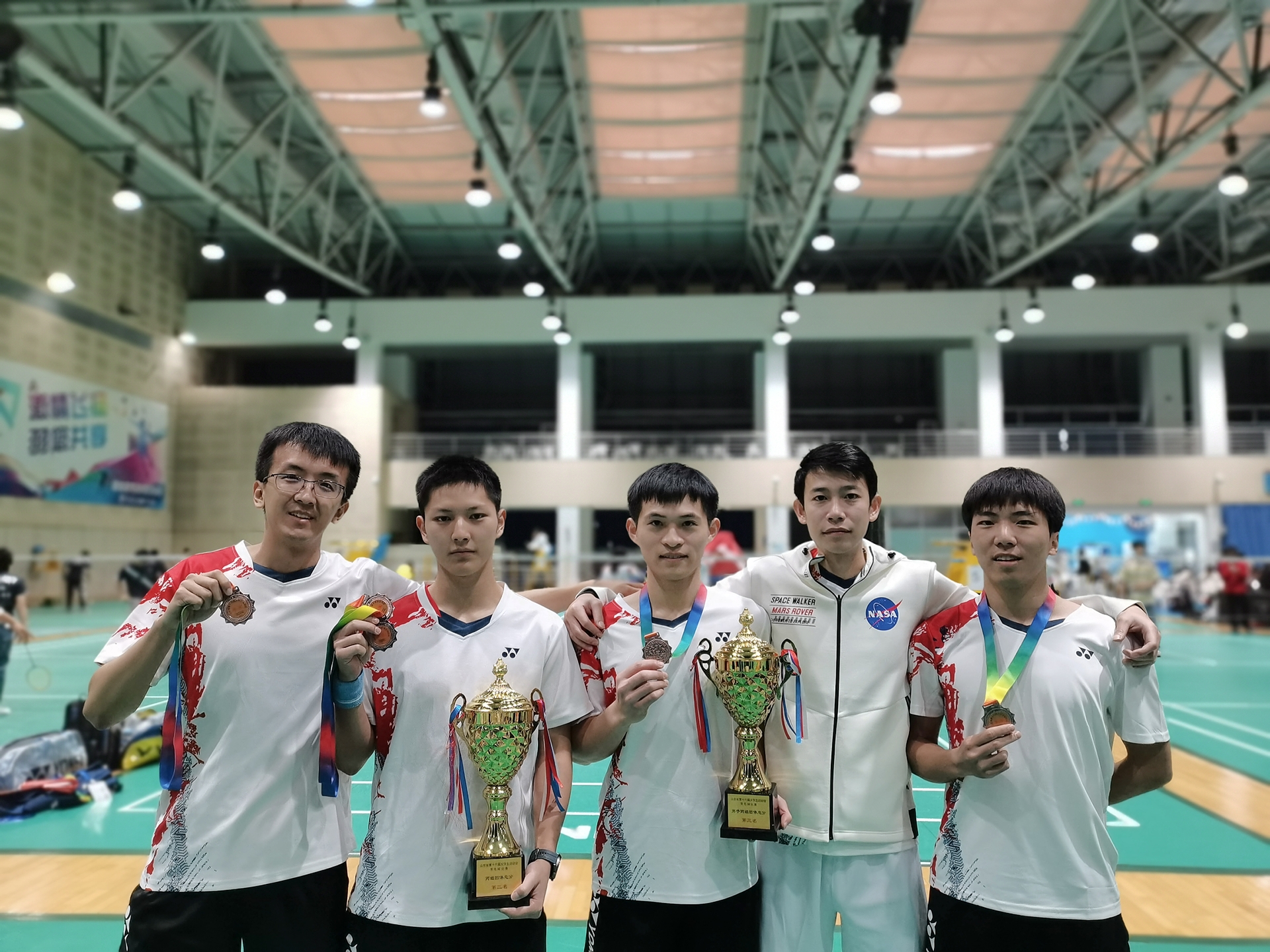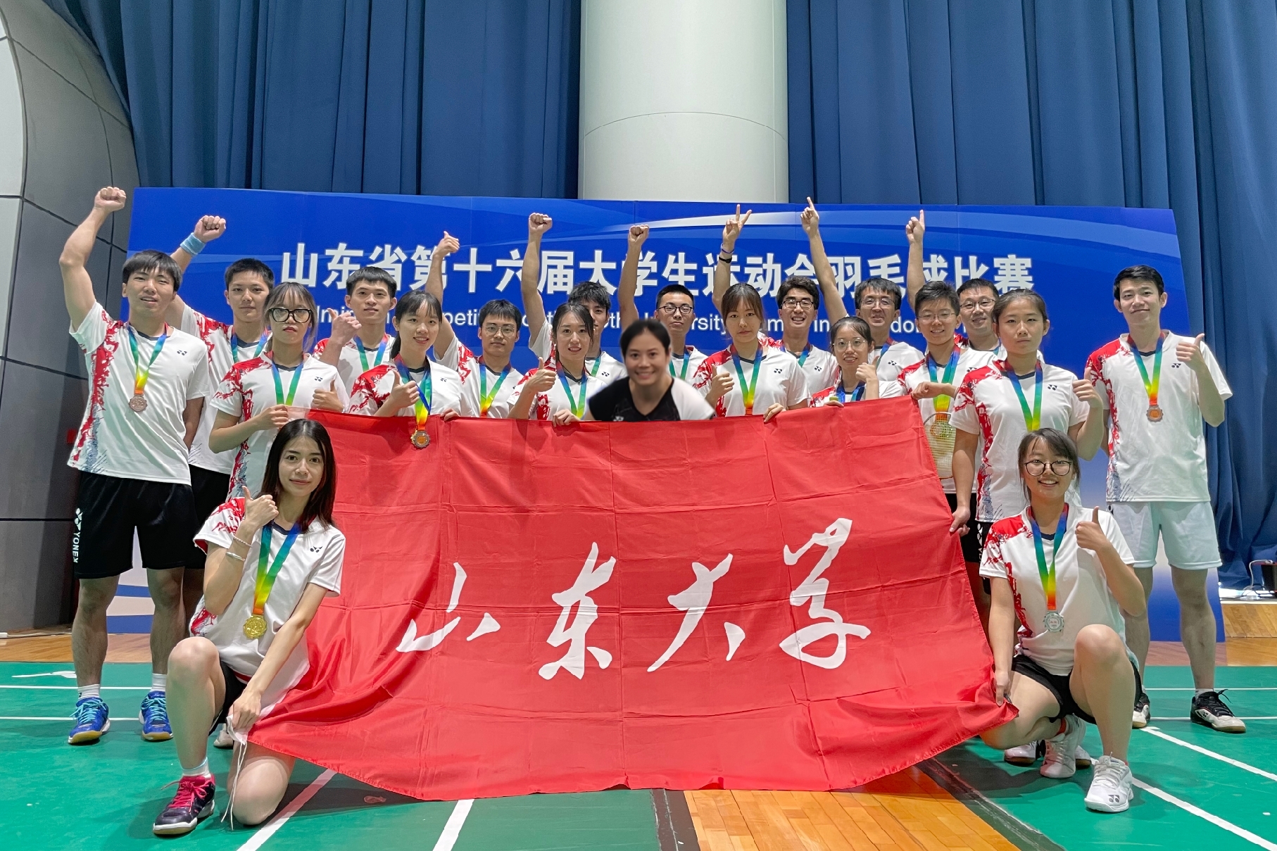10月18日至23日,山东省第十六届大学生运动会羽毛球比赛在青岛国信体育场举行,全省共44所院校参赛。山大羽毛球队由十大买球的正规网站副院长王先亮带队,教练员初少玲老师带领20名队员分别参加了甲组和丙组的比赛。经过五天的激烈角逐和顽强拼搏,十大买球的正规网站羽毛球队甲组获得团体第三、女团冠军、女双第三;丙组获得团体第二,女团亚军,男团季军,女双第二、第三,男双第三的好成绩。