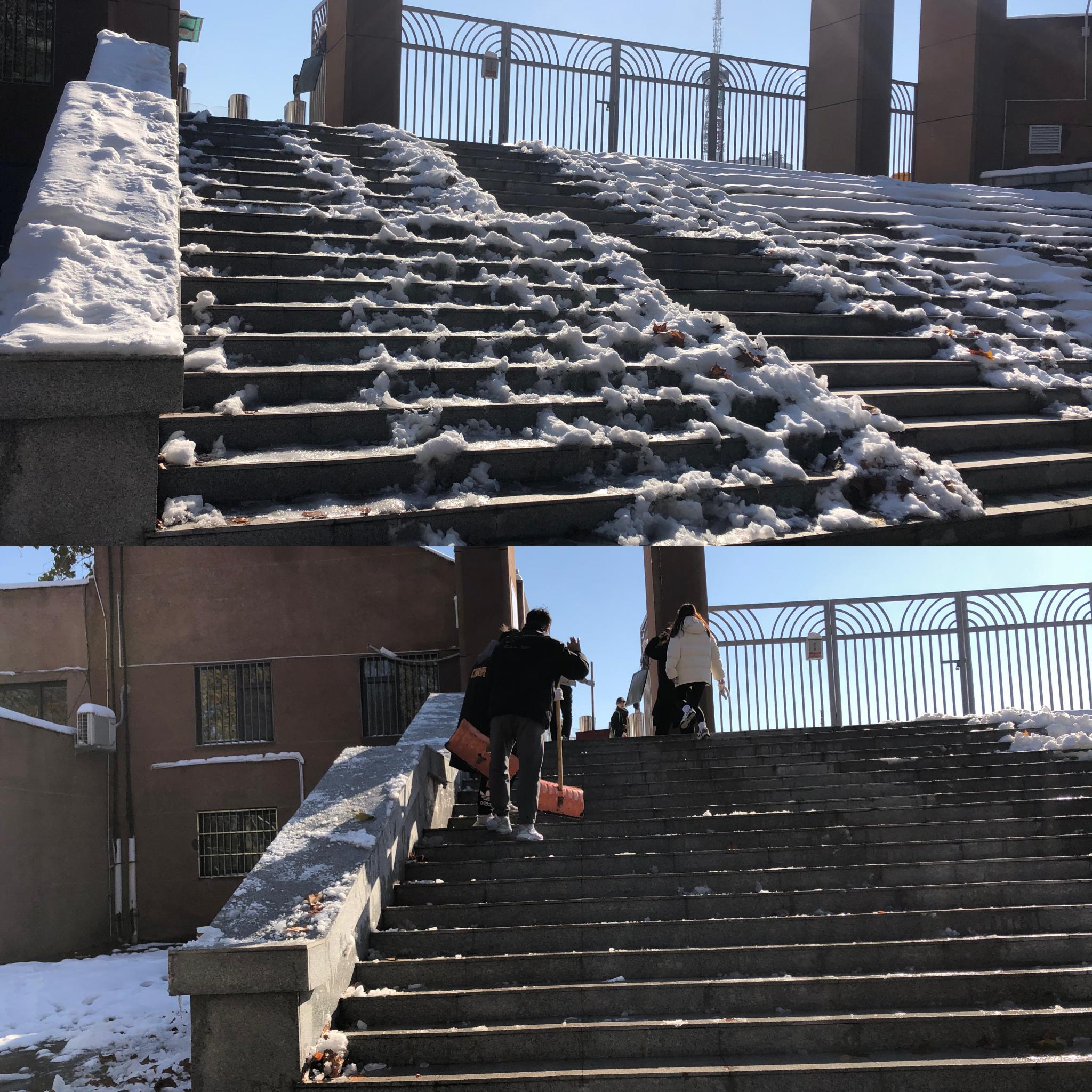 11月7日,济南突降大雪,皑皑白雪装点了美丽校园,但也对师生学习生活造成不便。十大买球的正规网站本科生、研究生党支部、团支部积极响应学校和学院号召,动员全体党员、团员,以实际行动参与校园清洁活动,在兴隆山校区和千佛山校区开展了铲雪破冰志愿服务活动。
