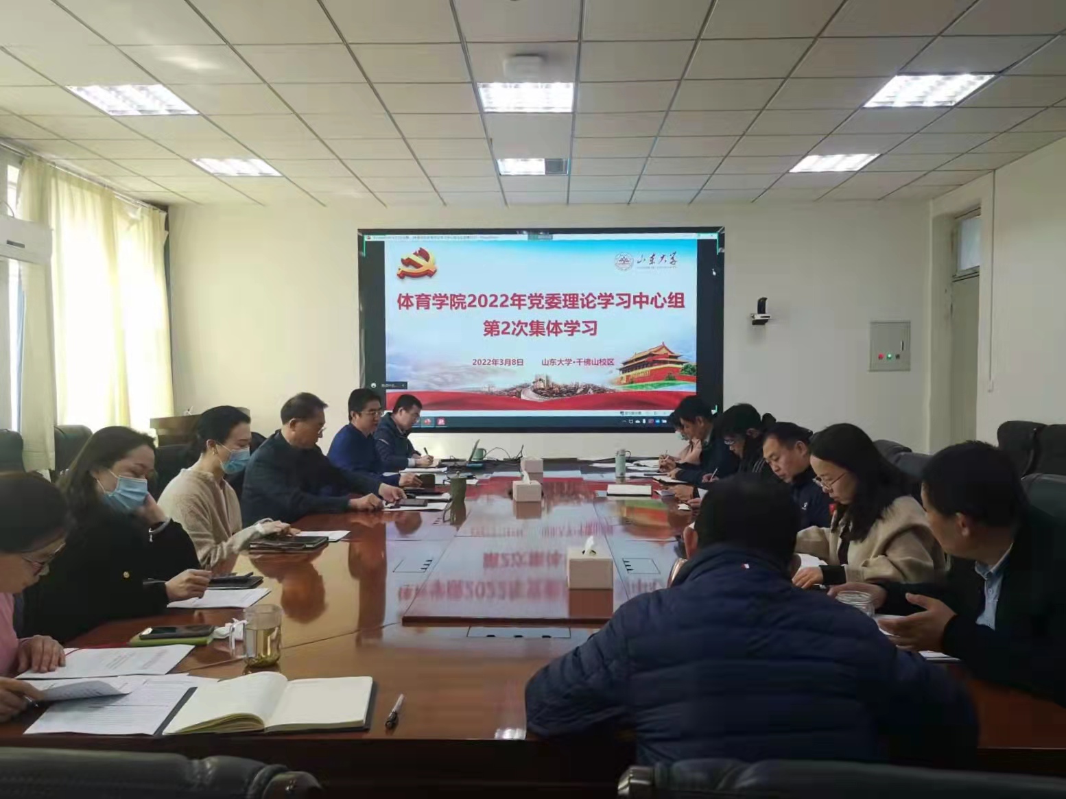 3月8日上午,十大买球的正规网站党委书记郭学庆在千佛山校区主持召开学院2022年党委理论学习中心组第2次集体学习,十大买球的正规网站领导班子全体成员、党支部书记、科级干部、机关工作人员等参加了本次学习。