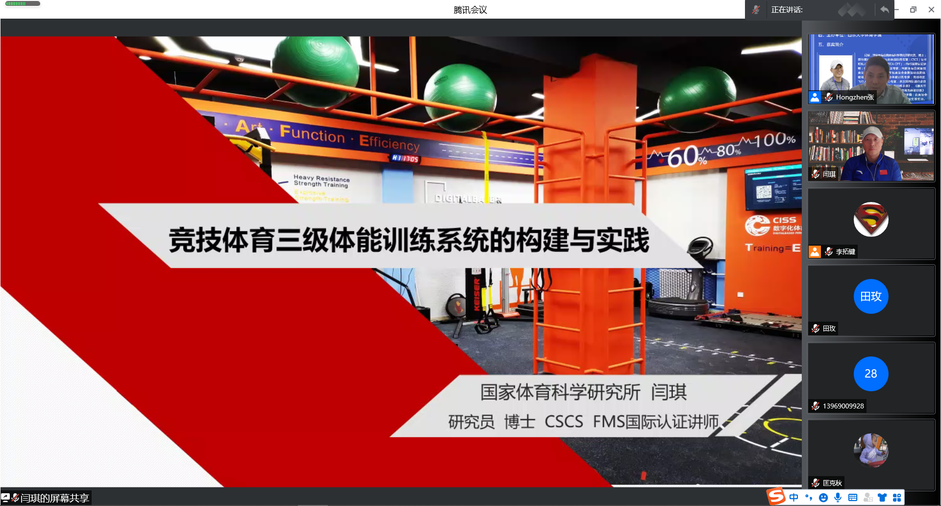 闫琪作了题为“竞技体育三级体能训练系统的构建与实践”的主题讲座,从竞技体育训练金字塔模型的身体功能训练、基础体能训练、专项体能训练三种训练以及科技引领训练这四部分展开阐释。在科技引领方面,闫琪强调科技是体能训练质量提升的关键,应用于运动员竞赛状态监控,身体基本功能评定,耐力、力量、爆发力测试与训练、身体恢复再生等各个环节。在身体功能训练方面,闫琪表示身体功能训练作为竞技体育三级体能训练系统中的基础环节,主要目的是防止运动损伤、提高竞技能力、强化心理品质,身体功能训练不是以强度为核心,而是以动作质量为核心,更加关注运动员的身体姿态、质量、动作模式方面。由于目前国内对体能训练认识的不完整,出现竞技体育训练金字塔模型倒置的情况,导致大量运动员存在运动损伤。闫琪具体分析了功能训练与功能性训练的区别,认为功能训练是在功能解剖学和功能动作系统(FMS)基础上,以缓解慢性疼痛、改善功能障碍和提高动作模式质量为主要目的的训练,是体能训练和专项训练的基础,并通过大量的功能训练解决身体损伤案例,表示了竞技体育体能训练需要先提高身体功能再提高体能,强调了功能训练对治疗运动损伤的重要作用。在基础体能训练方面,闫琪表示基础体能训练主要包括力量、速度、灵敏性、协调性、耐力这五个方向,具体分析了基于速度的力量训练(VBT)的过程、所使用的的主流应用设备以及对精英运动员训练的价值等。培训会最后,十大买球的正规网站教师们与闫琪就竞技体育三级体能训练系统的相关问题展开激烈的讨论。