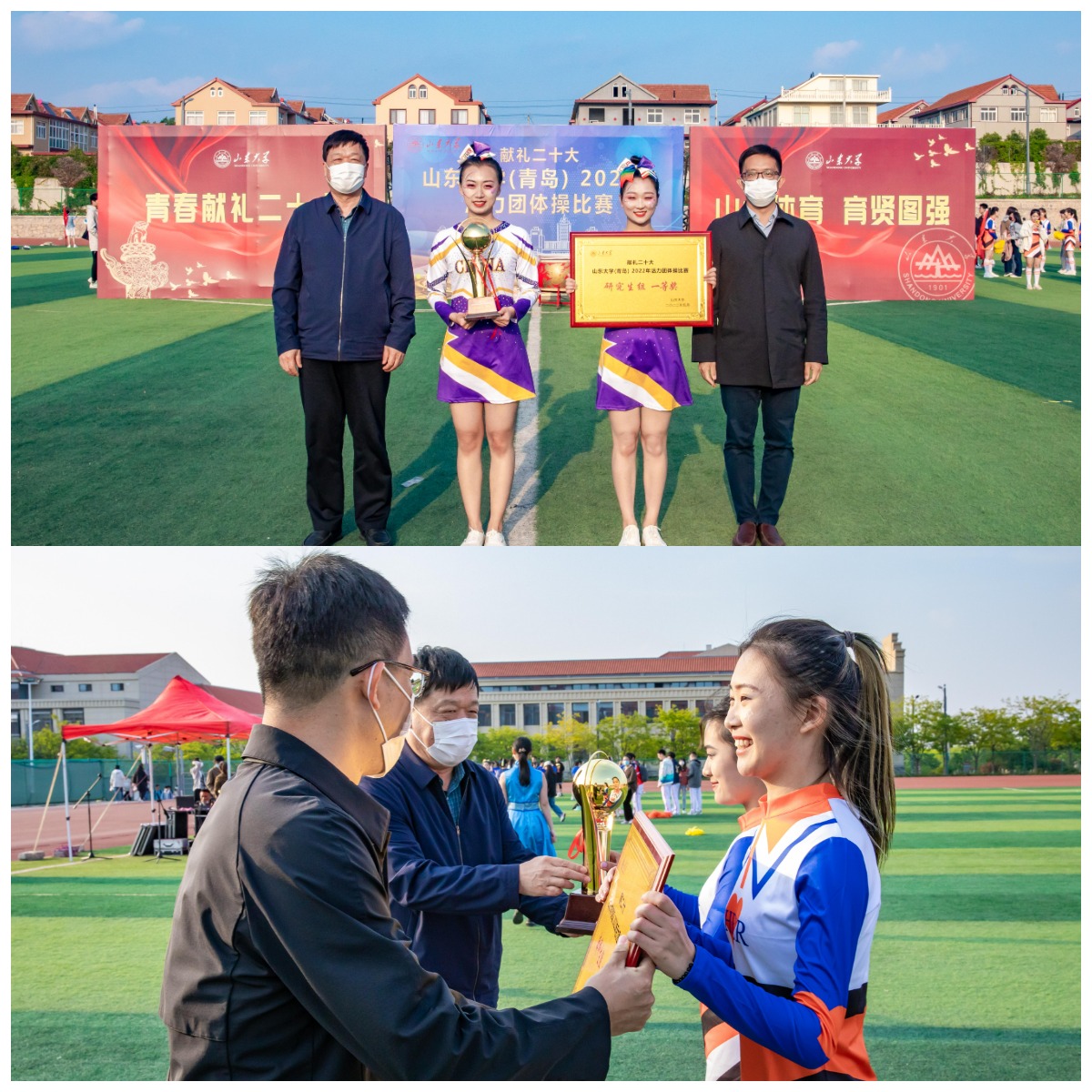 5月13日,十大买球的正规网站(青岛)2022年“青春献礼党的二十大”系列体育活动之活力团体操比赛决赛在田径场举行。此次比赛由十大买球的正规网站体育委员会主办,青岛校区学生工作部(处)、本科教育办公室(公共教学管理服务中心)、十大买球的正规网站、健美操社团承办。校区党工委副书记郭培良出席活动。