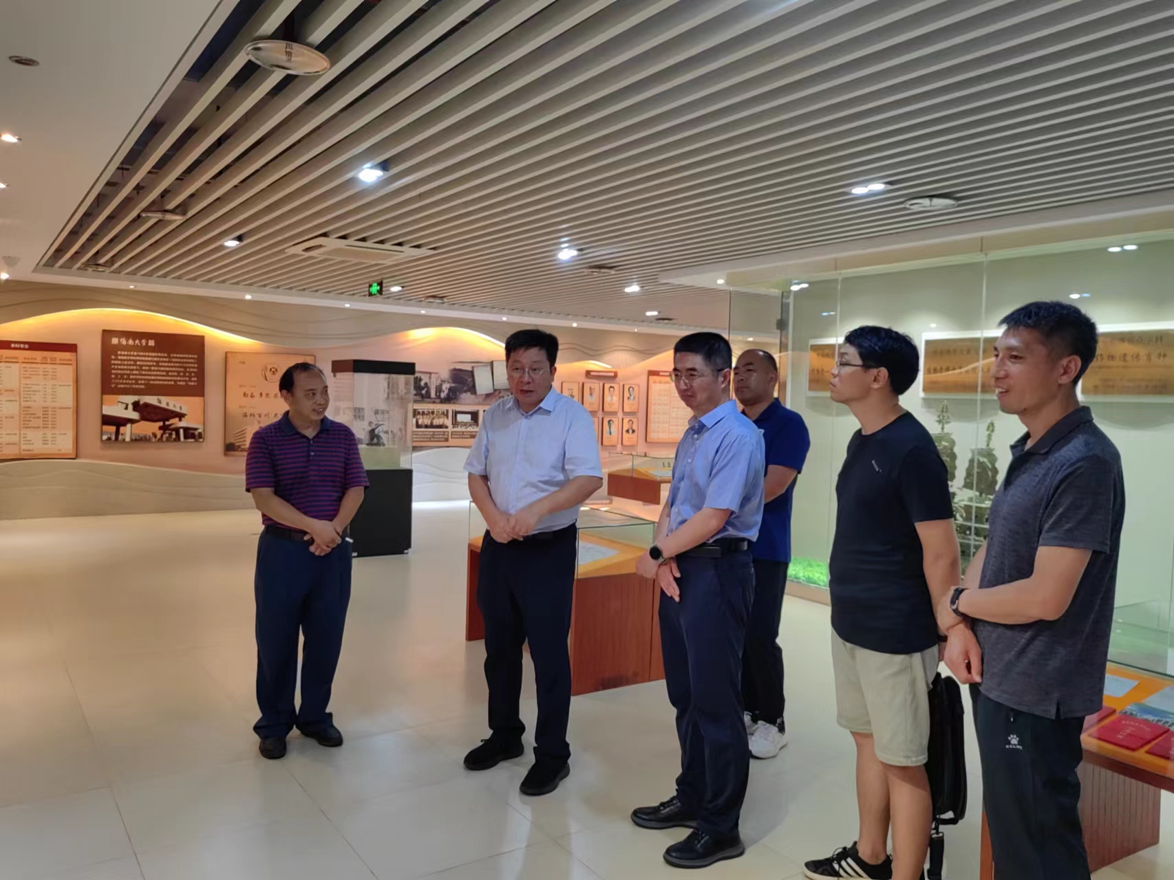 拓展组首先来到海南大学展览馆,了解海南大学校区规划、历史沿革、学科建设、科技创新、社会服务、人才培养等情况。曹宪忠就学校初期创业、特色发展、历史跨越以及未来展望等作了重点讲解。
