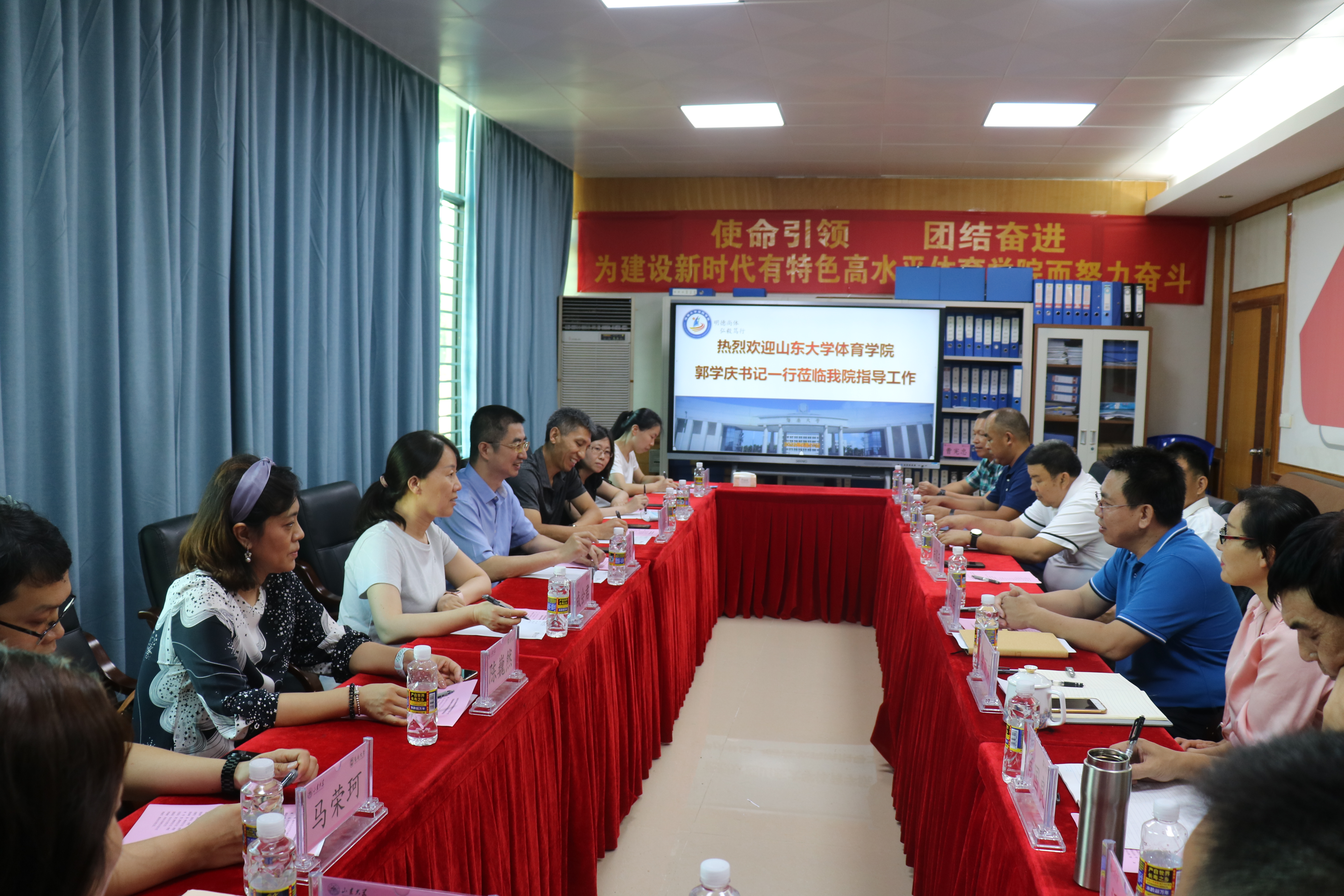 双方围绕专业和高水平运动队建设、人事职称改革、学科建设、场馆管理、师资队伍建设、薪酬分配与绩效管理、学生体质测试等问题展开热烈讨论。