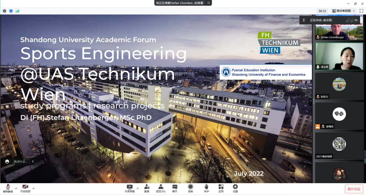 14日下午,奥地利维也纳应用科学技术大学生命科学工程系运动工程专业成员Stefan Lizenberger教授受邀做客暑期学校,作了题为《体育工程》的专题报告。Stefan教授从体育工程的发展沿革、研究焦点、对知识技能的要求、产业项目、国际合作以及对具体的实验等方面做了详细的介绍。