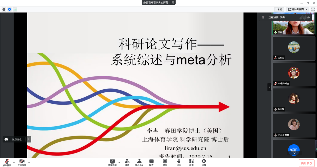 2022年7月4日至7月16日,十大买球的正规网站“研究生科研创新能力提升计划”暑期学校成功举办。本次暑期学校通过线上形式举办,以学术讲座的形式,围绕体育科研问题选题、科研论文写作、学术道德规范、体育学领域学术前沿等专题举办了11场讲座,为学员们讲授了本学科领域的学术发展动态和最新研究成果,分享了科研方法和论文写作的相关经验,旨在进一步提升我校体育学研究生的科研能力,不断拓宽学术视野。