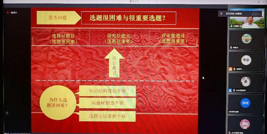 在7月4日的开班仪式上,十大买球的正规网站副院长高岩就本次暑期学校的举办目的、主题内容、师资情况、注意事项等内容进行了详细介绍。随后,孙晋海受邀为暑期学校学员作了题为《体育科研问题选题方法论》的学术讲座,他从选题举例、选题三要、选题解读、到哪儿选、怎样选题、题目推敲六个方面和大家进行了讨论,分享了选题的思路、方法与技巧。