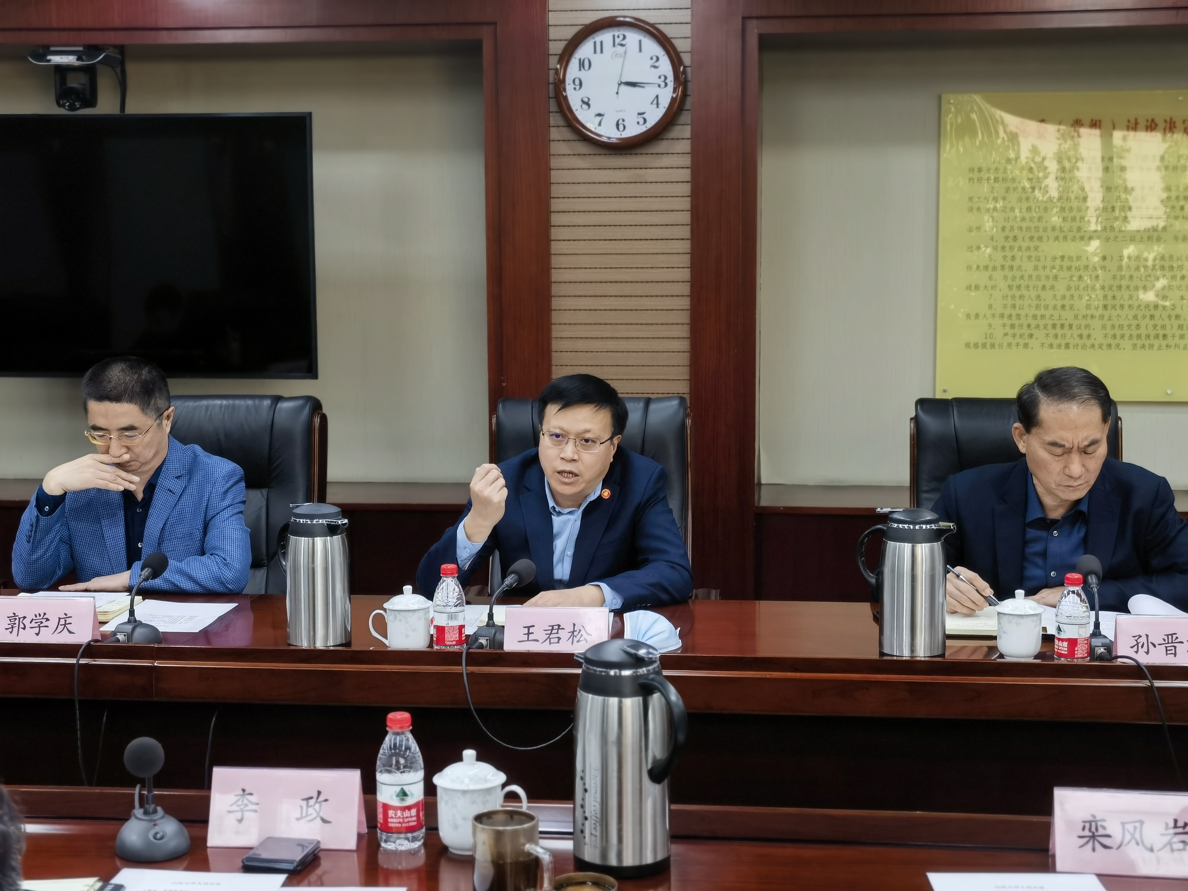 10月21日下午,十大买球的正规网站党委副书记王君松、合作发展部副部长王震、十大买球的正规网站院长孙晋海、党委书记郭学庆一行到山东省体育局洽谈调研,山东省体育局党组书记、局长李政,党组副书记、省体育总会专职常务副主席乔云萍,党组成员、副局长栾风岩等领导出席座谈会,会议由李政局长主持。