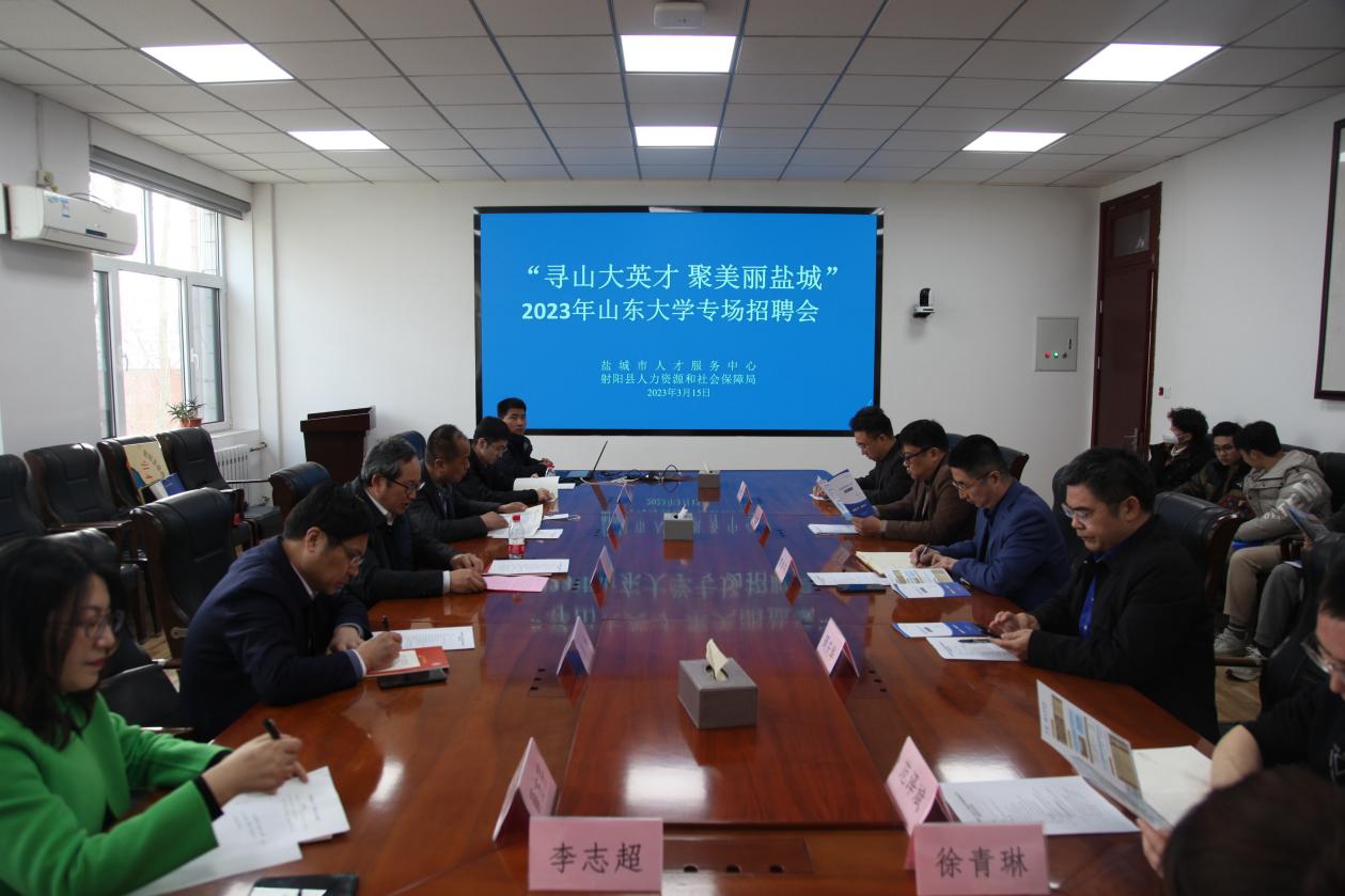 3月15日,十大买球的正规网站与江苏盐城市校地合作签约授牌仪式在千佛山校区举行。盐城市人才中心主任孙永祥,射阳县人社局局长李炜、人社局事业科科长王振东、人才中心副主任薛芳芹,十大买球的正规网站党委书记郭学庆、党委副书记卢士涌、团委书记范泽斌,十大买球的正规网站学生就业创业指导中心副主任周庆华参加签约仪式,会议由卢士涌主持。