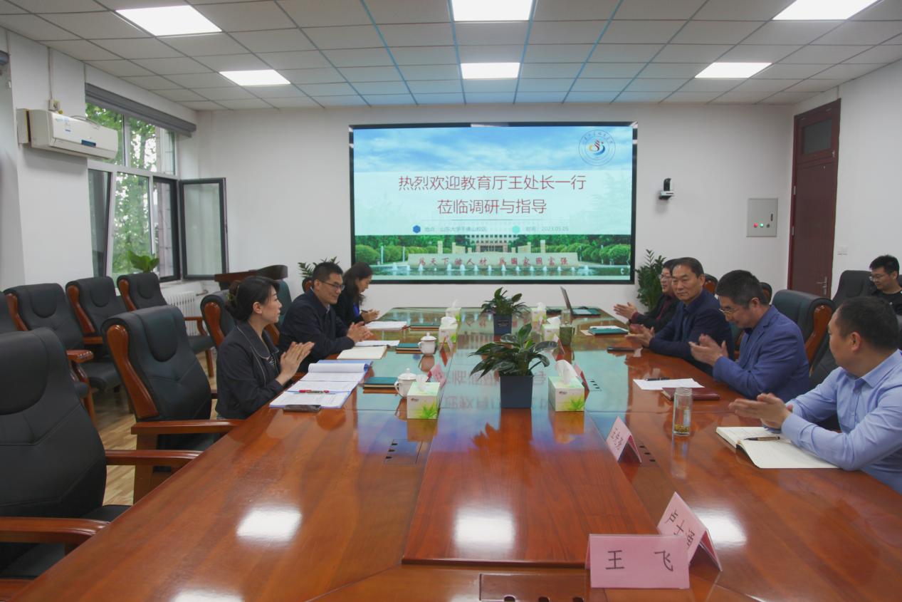 5月5日上午,山东省教育厅体卫艺处处长王桂龙、山东十大买球的正规网站团委书记杨文、鲁东大学十大买球的正规网站院长邱建国、教育厅体卫艺处王琳一行莅临十大买球的正规网站调研指导工作,与十大买球的正规网站领导班子成员、山东省学校体育协会代表座谈交流,座谈会由十大买球的正规网站党委书记郭学庆主持。