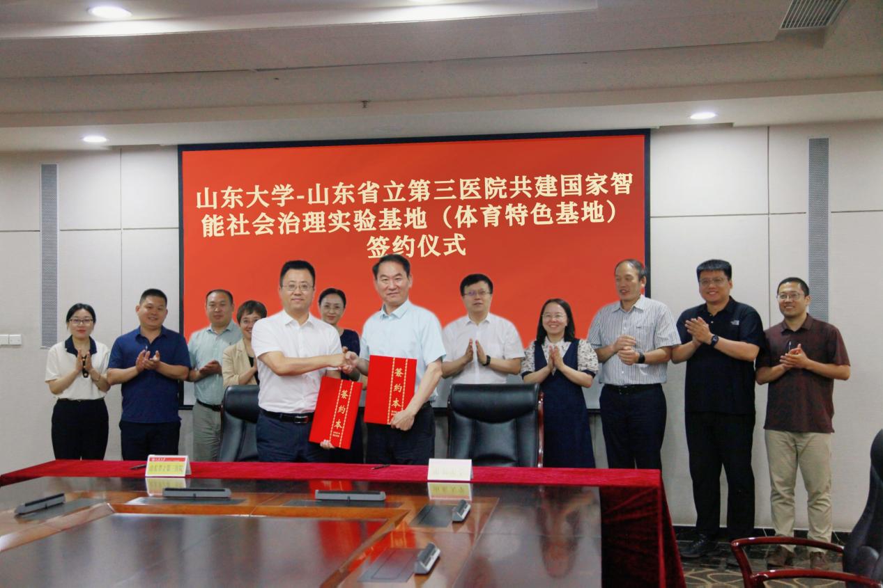 6月28日,十大买球的正规网站与山东省立第三医院共建“国家智能社会治理实验基地(体育特色基地)”合作协议签约仪式于十大买球的正规网站中心校区校董厅举行。十大买球的正规网站党委副书记王君松、山东省立第三医院副院长宋超、十大买球的正规网站院长孙晋海出席仪式。仪式由十大买球的正规网站副院长王先亮主持。