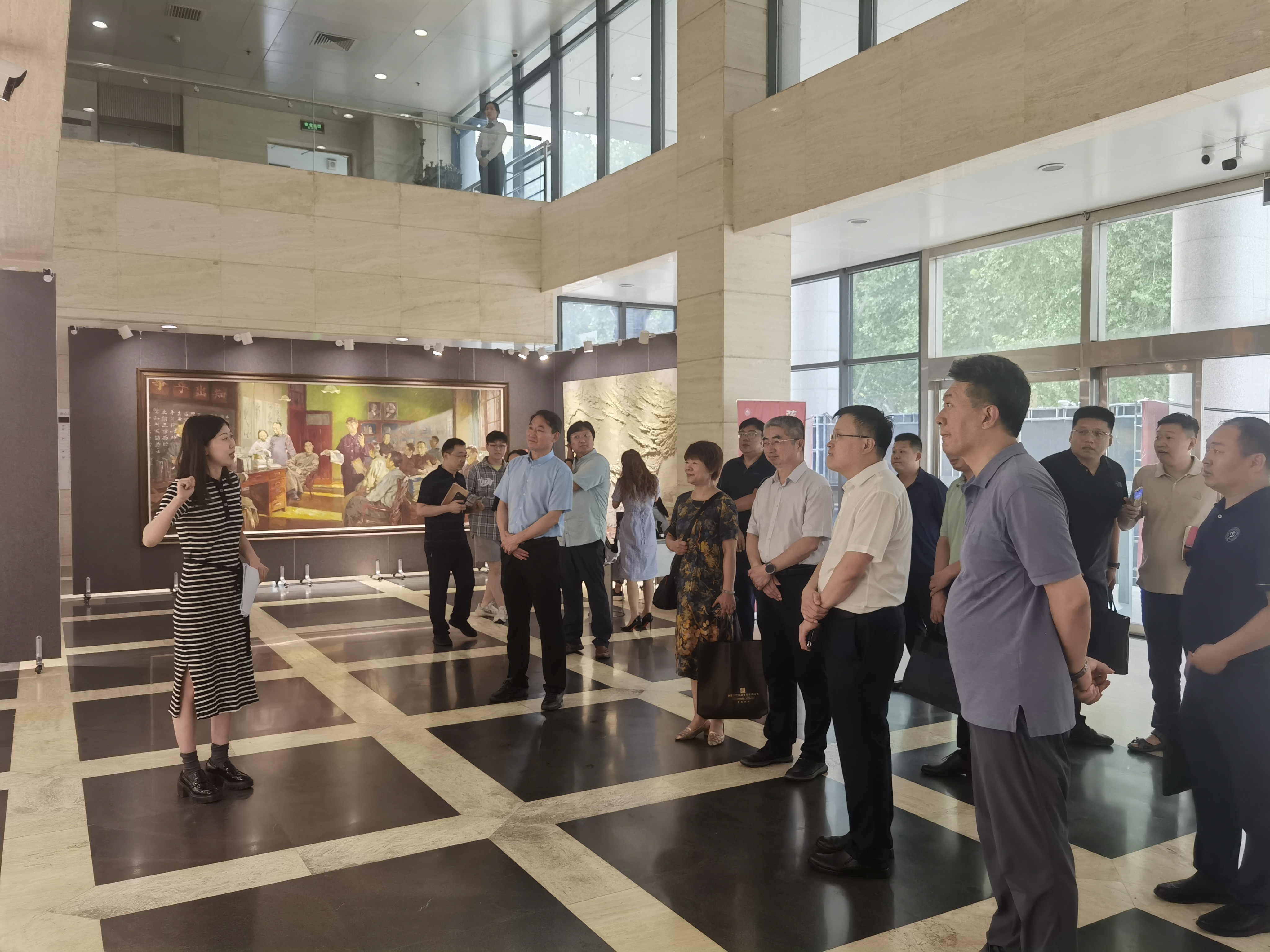 与会人员首先参观了在中心校区知新楼举办的“十大买球的正规网站重大主题美术大展”,大展包括“十大买球的正规网站重大校史主题美术创作”和“十大买球的正规网站重大科研成果主题美术创作”两个篇章,作品选择十大买球的正规网站最具代表性的历史典故和历史人物为题材,将山大人在救国、报国、强国进程中书写的创业史、发展史、奋斗史予以艺术性的展现。通过讲解,大家实地感受到了“家国情怀、担当精神、崇实品格、创新素养”的山大基因,更深入理解“学思想、强党性、重实践、建新功”的总要求。