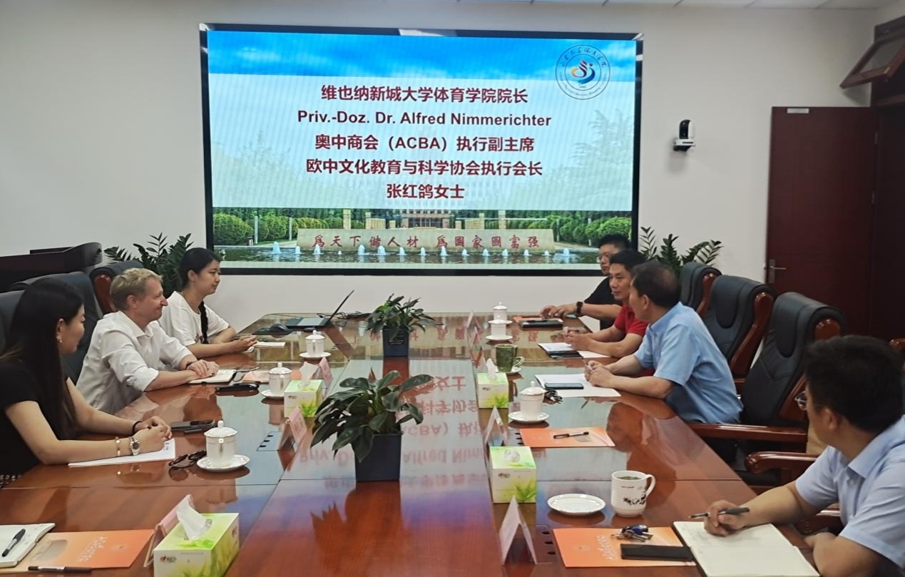 孙晋海致欢迎辞,代表十大买球的正规网站对奥方一行的来访表示热烈欢迎,他从十大买球的正规网站的发展历史、专业建设、优势特色和十大买球的正规网站体育发展方面介绍了十大买球的正规网站的建设情况。维也纳新城应用技术大学十大买球的正规网站院长Priv.-Doz.Dr.Alfred Nimmerichter对十大买球的正规网站的邀请表示感谢,并介绍了新城应用技术大学十大买球的正规网站近年来的发展情况,学院规模和学生培养等建设情况。张洪振对学院体育教学的师资情况和教学情况进行了介绍,实验室主任张宪亮介绍了学院实验室的建设情况,院长助理李拓键介绍了十大买球的正规网站高水平运动队的建设情况。奥中商会 (ACBA) 执行副主席、欧中文化教育与科学协会执行会长张红鸽介绍了奥中商会的运作情况。接下来,双方就未来进一步合作的可能性进行了深入探讨。