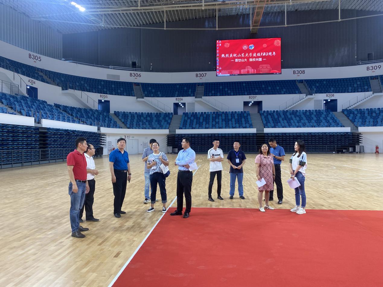 调研组一行对场馆的外部环境、内部场地条件、软硬件设施等进行了实地考察,并详细询问了目前场馆工作进展以及开学典礼的准备情况。