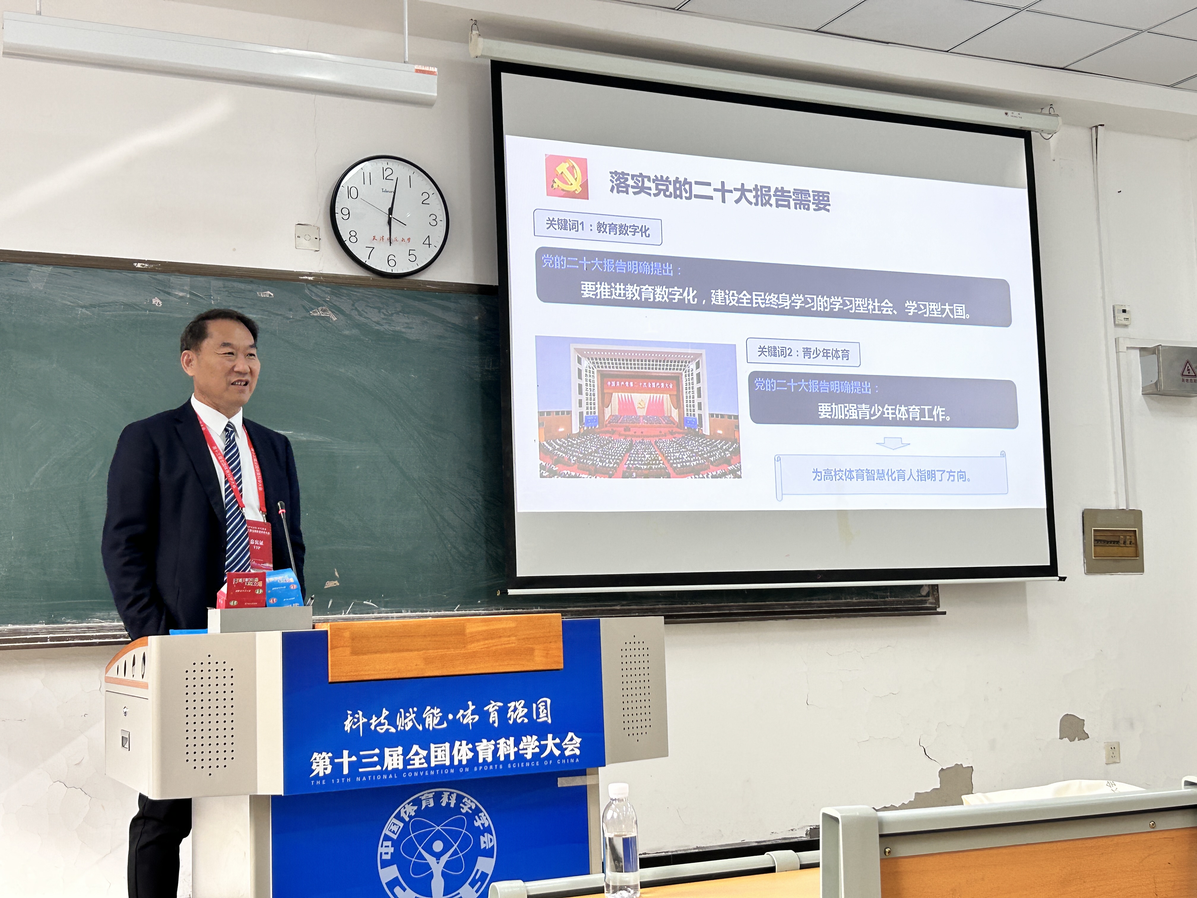 本届大会体院共73篇论文入围,其中研究生为第一作者的共69篇,创历史最佳成绩。录用论文涉及体育社会科学、体育管理、体育产业、学校体育、体质与健康、运动心理、体育信息、运动训练学、体育史、武术与民族传统体育、体育新闻传播、体育统计、体育建筑等13个分会板块,参会形式主要分为专题报告、墙报交流及书面交流。其中,专题报告录取20篇,墙报交流45篇,书面交流4篇,全面展现了体院各学科领域的研究成果,充分展示了体院师生的学术风采和精神风貌。此外,孙晋海教授受邀作为第七专题会场的主旨报告人出席本届大会并分享了《高校体育智慧化育人实施路径研究》。