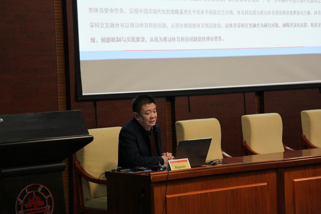 黄谦作了题为《从跨学科到超学科:体育学科交叉融合趋势与展望》的报告,内容涉及体育学科交叉融合的演化历程、行态呈现、创新机制、未来展望。他表示,我们需要通过学科交叉来创新体育学科研究方法,破除体育单一学科发展的组织壁垒,积极开展跨学科科研平台的搭建,以服务体育强国建设为超学科建设目标,以体育发展社会现实需求为导向进行学科管理,构建体育多学科的“政产学研用”协同培养模式。