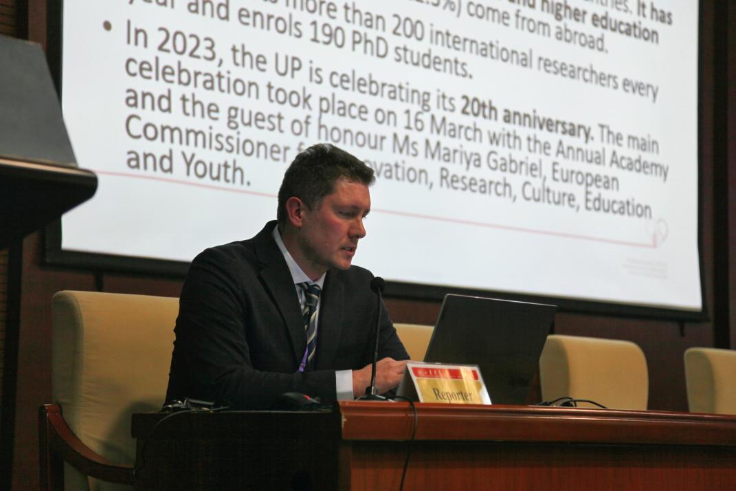 罗马尼亚阿拉德阿拉德奥雷尔·弗大学校长波帕·亚历山德鲁、塞尔维亚尼什大学体育与运动学院内纳德·斯托伊科维奇、斯洛文尼亚普里莫尔斯卡大学卫生科学学院马特伊·普列夫尼克、波黑巴尼亚卢卡大学亚历山大·库克里克、塞尔维亚科索沃米特罗维察普里什蒂纳大学十大买球的正规网站院长维罗柳布·斯坦科维奇、波黑东萨拉热窝大学校长马尔科·古塔利分别从地理位置、历史沿革、体育项目、十大买球的正规网站情况、体育学科建设等多个角度出发,对各自的院校背景与体育学科发展进行了介绍。