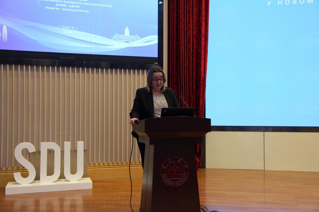 扎娜·多利卡宁教授对诺维帕扎尔州立大学及其体育学科建设做了报告。报告围绕塞尔维亚诺维帕扎尔地区和诺维帕扎尔州立大学的历史,学校的使命、结构和建设目标,学校的体育健康教育现状及取得的成就展开。