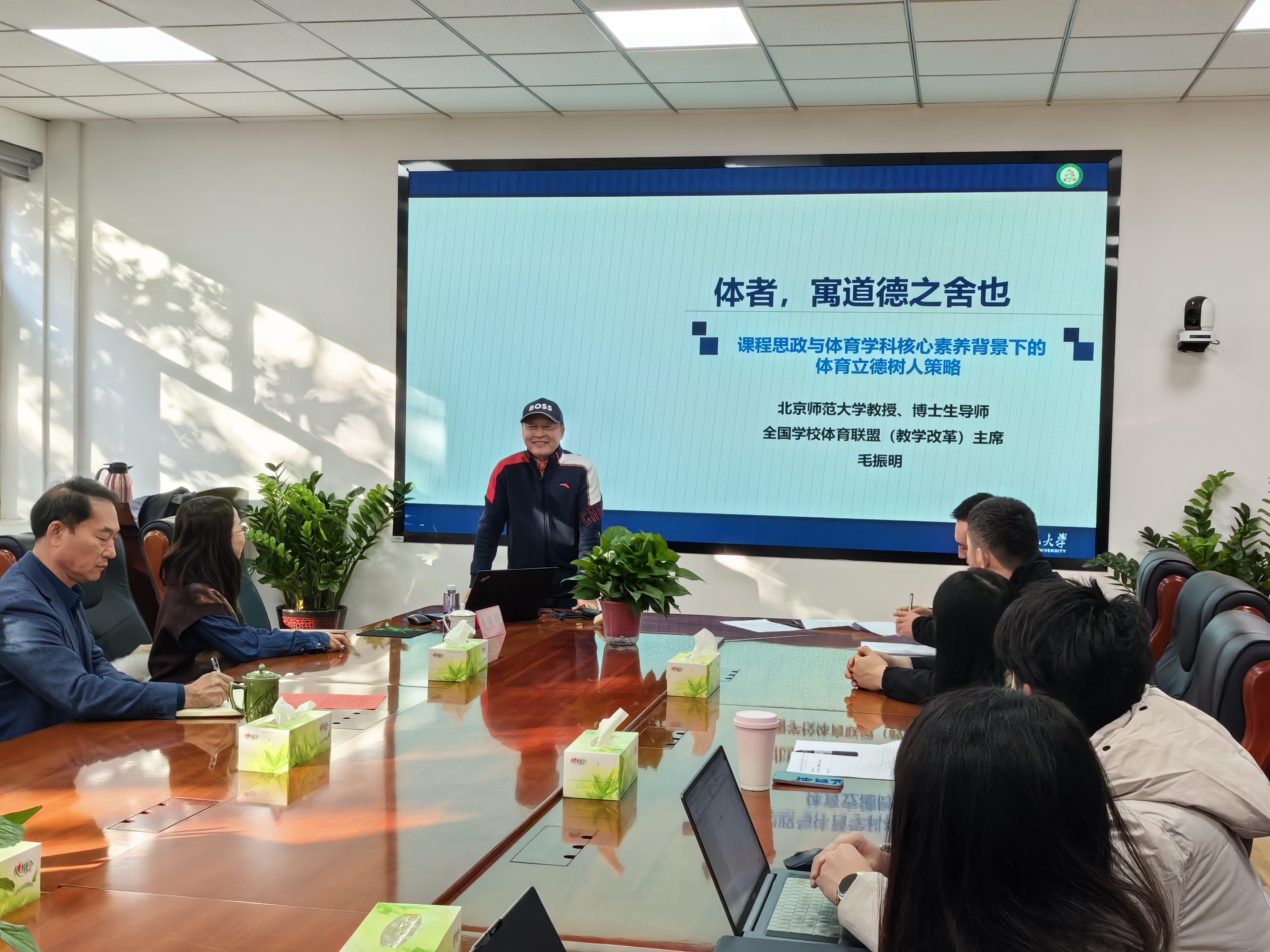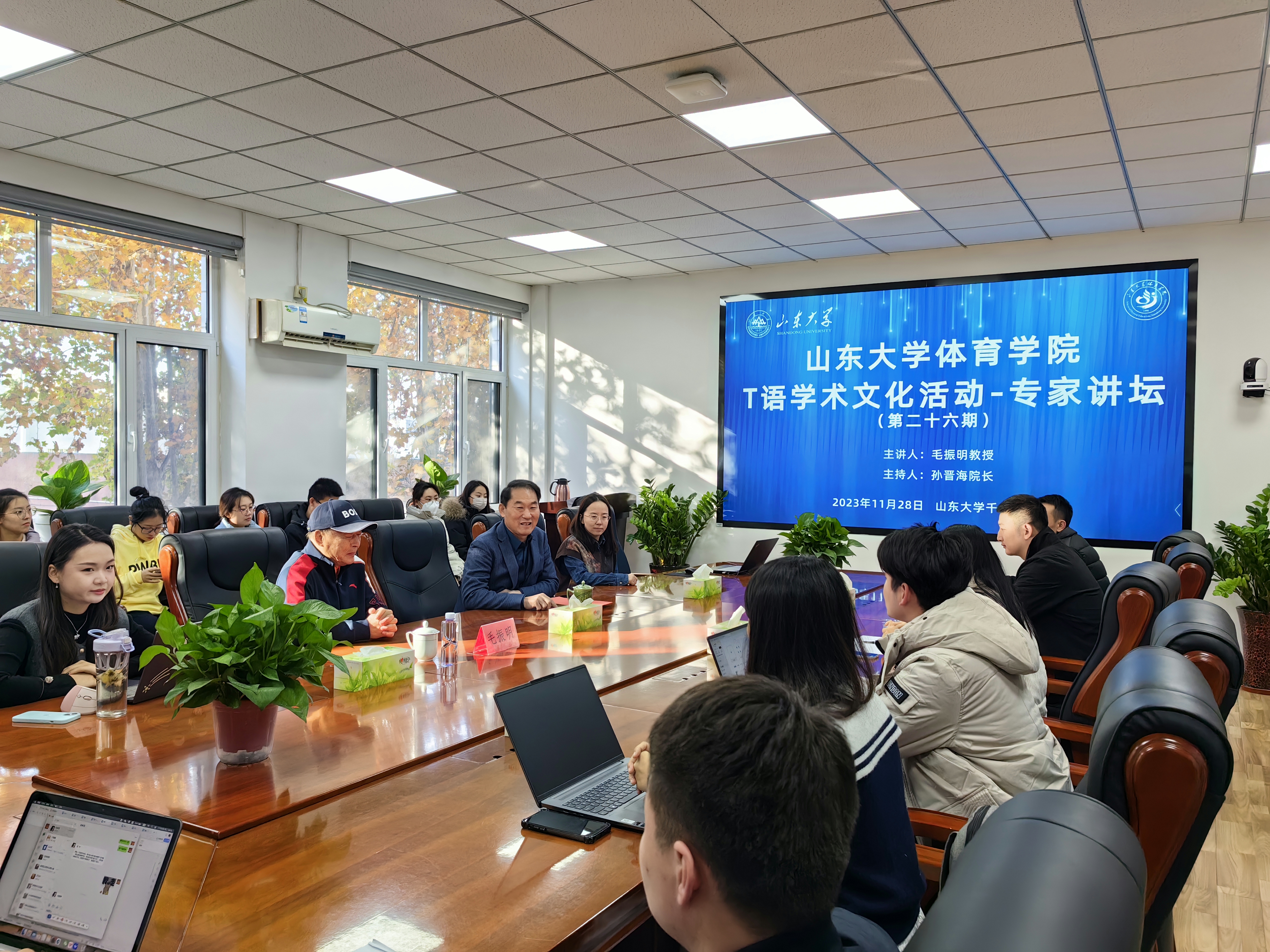 11月28日上午,十大买球的正规网站举办第二十六期T语学术文化活动—专家讲坛。本次讲坛邀请了北京师范大学毛振明教授作题为《寓道德之舍也-论体育立德树人与课程思政》的学术报告。讲坛由十大买球的正规网站院长孙晋海主持,副院长高岩、全体博士研究生以及二三年级硕士研究生参加活动。