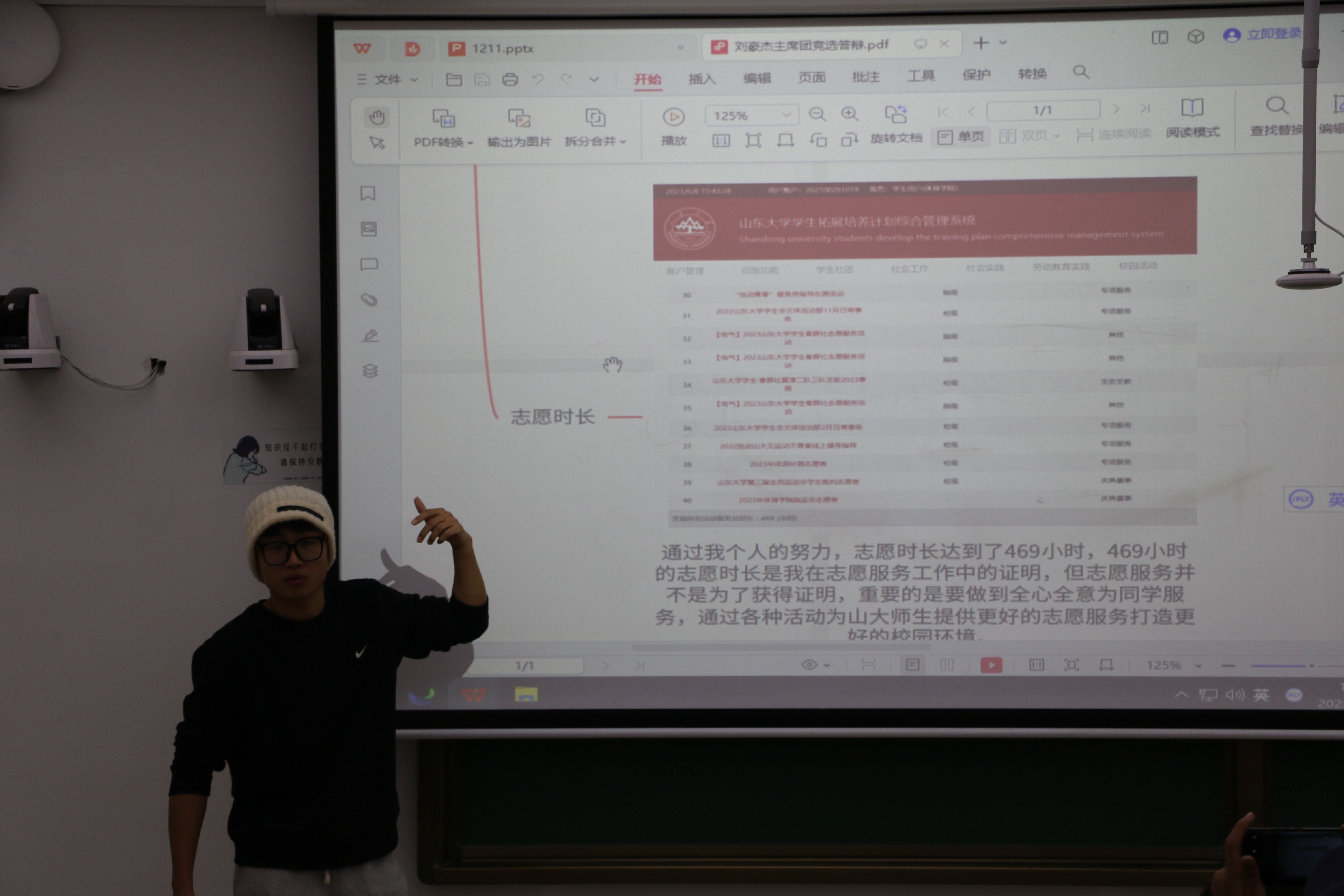 优秀志愿者甘文浩,通过与同学互动交流,引导大家体会在校期间志愿服务对我们大学生成长的意义。他说,大学期间不单单是学习,这些志愿活动是大学生提升自己的重要方式,大学生要跳出书本,通过积极参加志愿服务活动,学会从社会服务与实践的角度来看待问题。