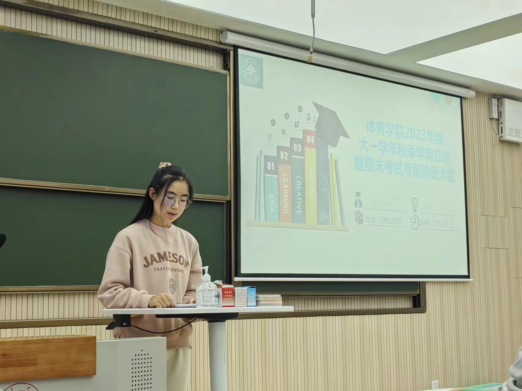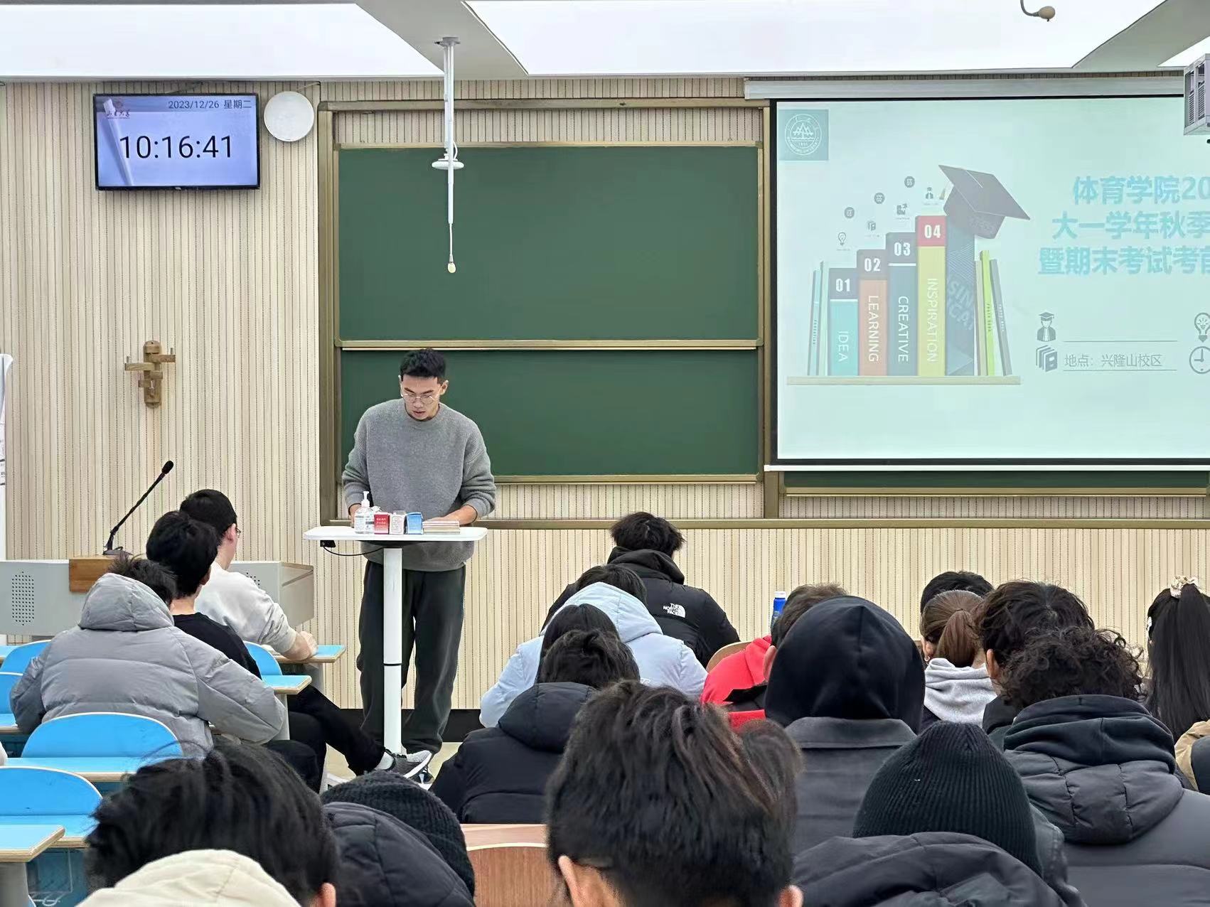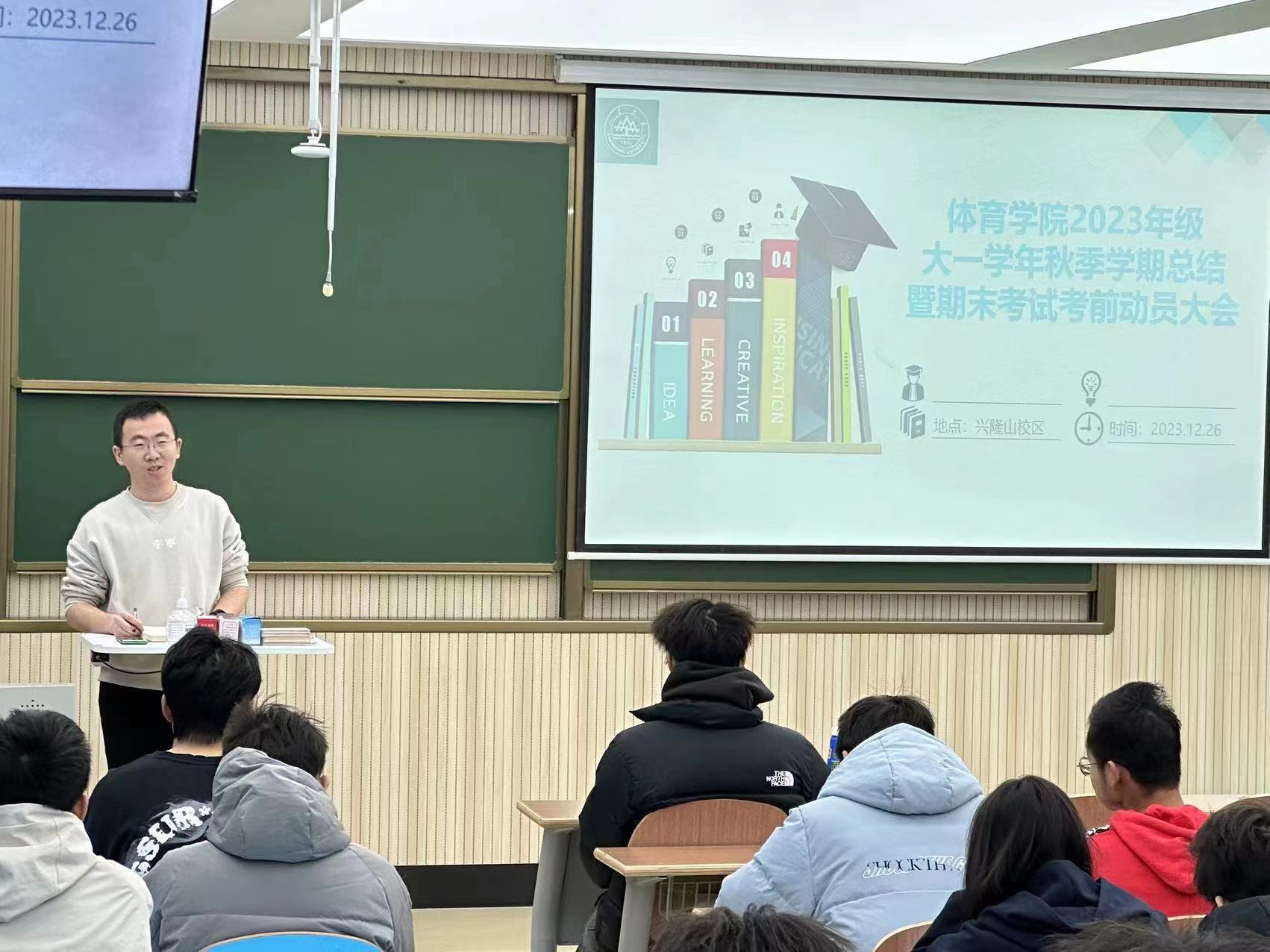 12月26日,十大买球的正规网站在兴隆山校区召开2023级主题班会,进行了大一学年秋季学期总结暨期末考试考前动员。学院团委书记、辅导员范泽斌、2023级学生参加本次会议。