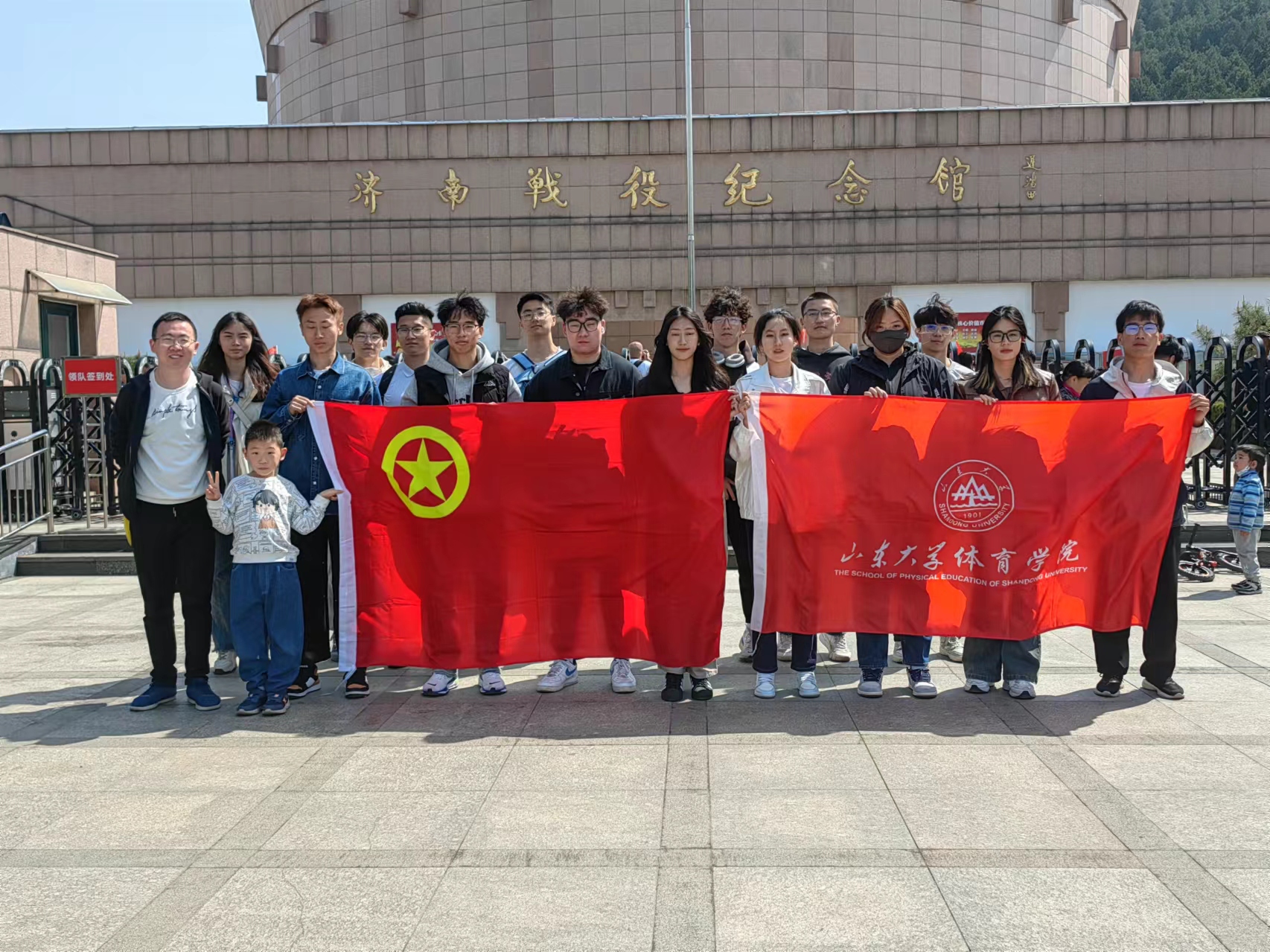 同学们首先参观了英雄山下的济南战役纪念馆。馆内记录了济南战役的全过程,陈列了战役缴获的枪支,一件件染血的军装,一封封泛黄的书信,仿佛受到他们革命精神的感召与鼓舞,感悟到可歌可泣的家国情怀,为在场同学上了一场生动形象的思政课。纪念馆之行后,同学们观看济南战役全景图展览,导播深情的演讲,缓缓转动的图画,仿佛真的穿梭进那段峥嵘岁月,与革命先烈同频共振,感受战场上的炮火纷飞以及抗战胜利的喜悦。最后一站,同学们前往由毛主席亲笔题词的革命烈士纪念碑,纪念碑上“革命烈士纪念塔”七个字气势磅礴,雄浑有劲,象征着革命精神永垂不朽。全体同学在庄严肃穆的纪念碑下向革命先烈默哀致敬以表达对前辈们的崇高敬意和深深思念。