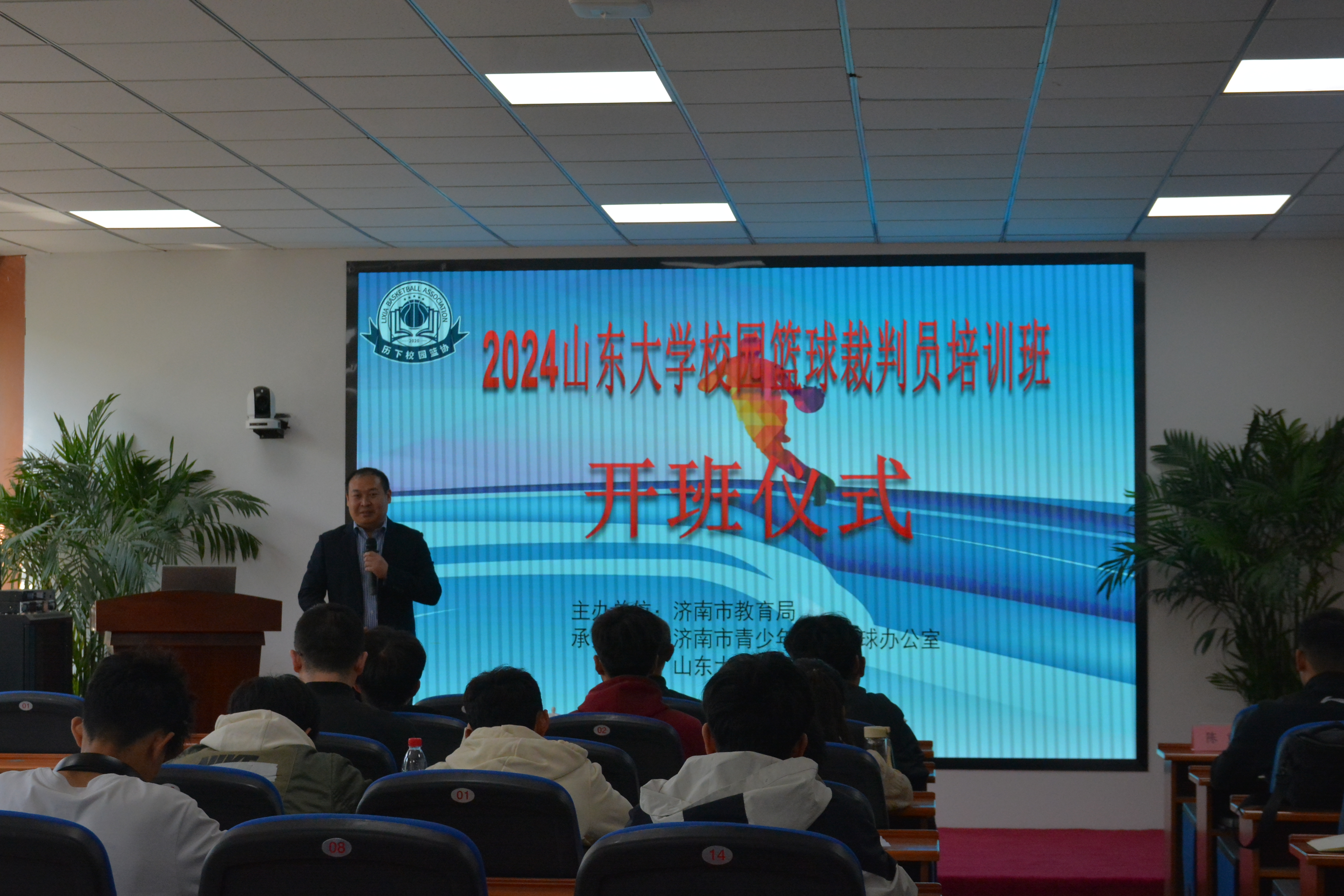 为促进校园篮球创新发展,提高十大买球的正规网站篮球执裁水平,4月7日,由济南市青少年校园篮球协会与十大买球的正规网站联合举办的2024年十大买球的正规网站校园篮球裁判员培训班开班仪式在十大买球的正规网站千佛山校区十大买球的正规网站讲学厅举行,培训班成员的招募面向十大买球的正规网站(校本部)各学院,40余名学生参加本期培训,十大买球的正规网站副院长王先亮参加仪式并讲话。