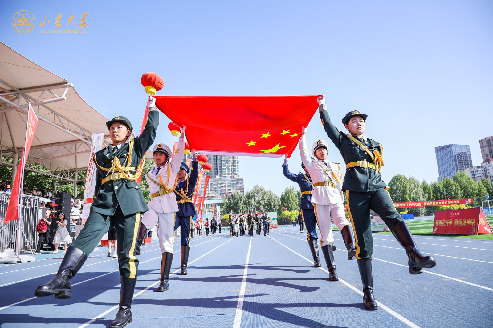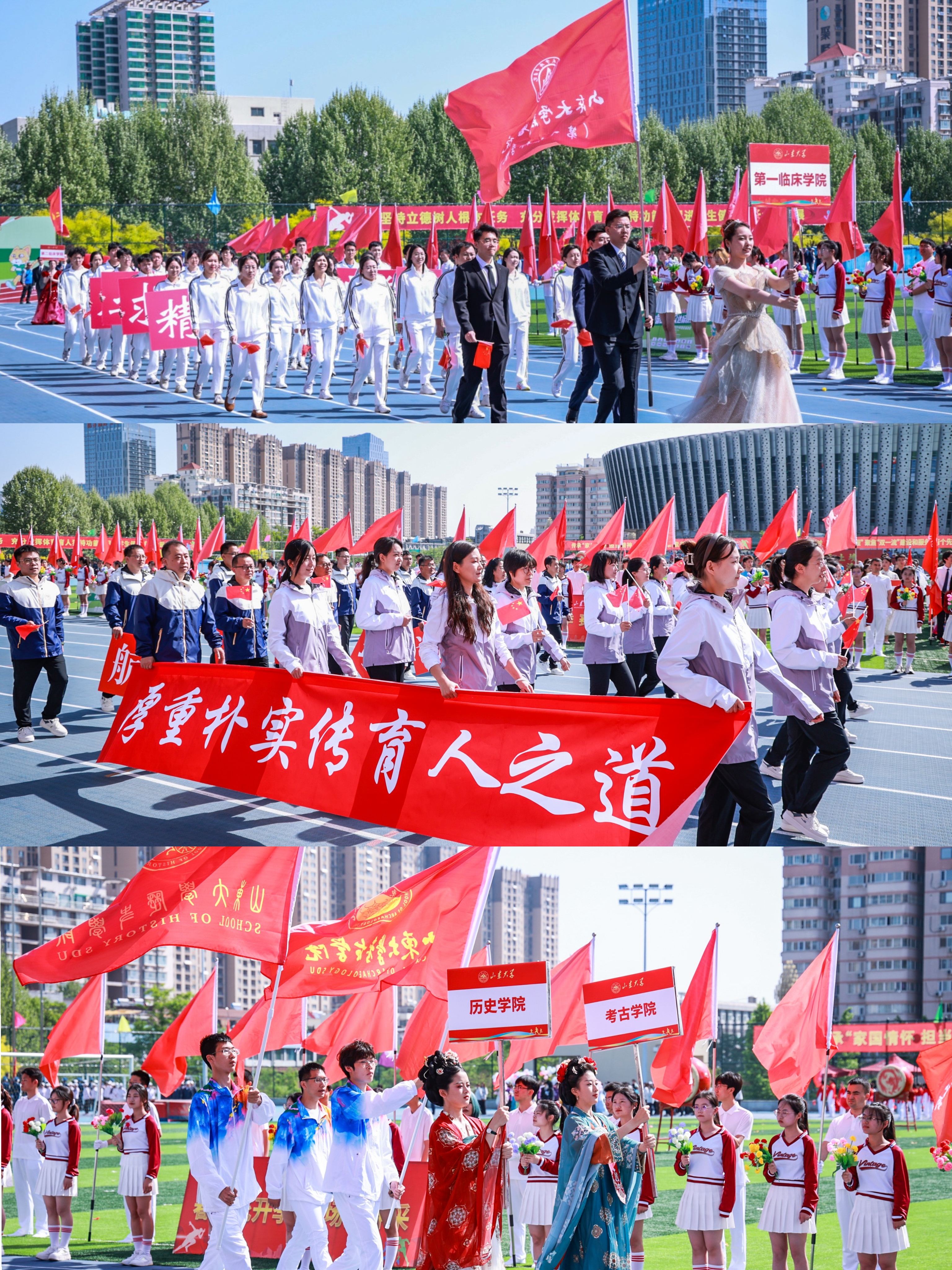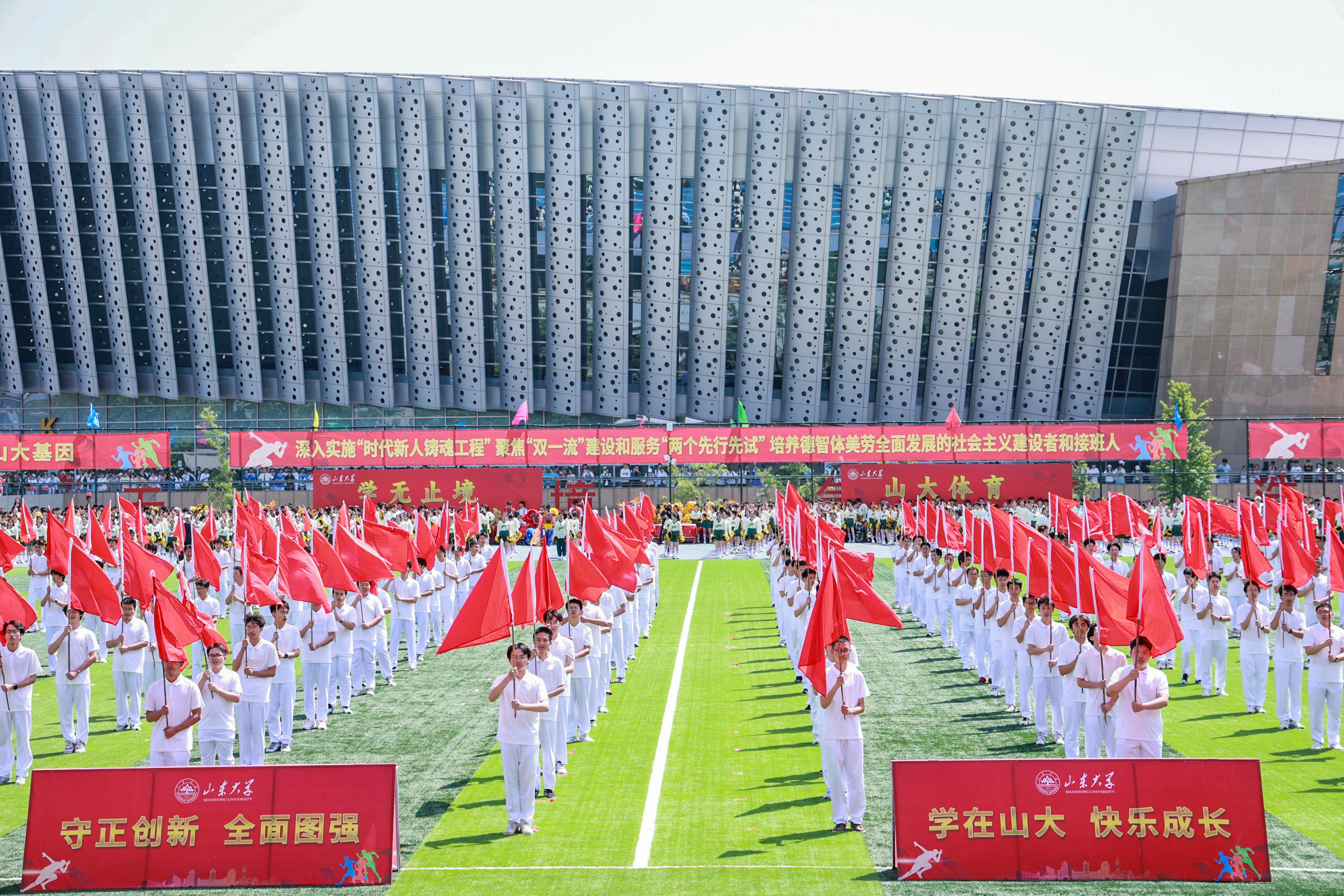 李术才在致辞中表示,百廿山大一直有着重视体育的优良传统,近年来,学校坚持以习近平总书记关于教育、体育的重要论述为指引,全面加强新时代学校体育工作,持续强化“山大体育、育贤图强”的体育育人理念,高度重视“三全育人”“五育并举”,坚持以师生为中心,积极探索与担当民族复兴大任的世界一流大学相适应的体育育人新模式。体育强则中国强,青年强则国家强,希望青年学子们在大学养成终身锻炼的习惯,不断磨练体质、意志和决心,争做有理想、敢担当、能吃苦、肯奋斗的新时代好青年。希望广大师生医务员工以运动会为契机,把青春、健康、活力融入到日常学习和工作中去,在每一个人的人生赛道上都跑出自己的加速度,共同为“强校兴国”注入澎湃的青春动能,努力为中国式现代化山大篇章贡献更多智慧和力量。