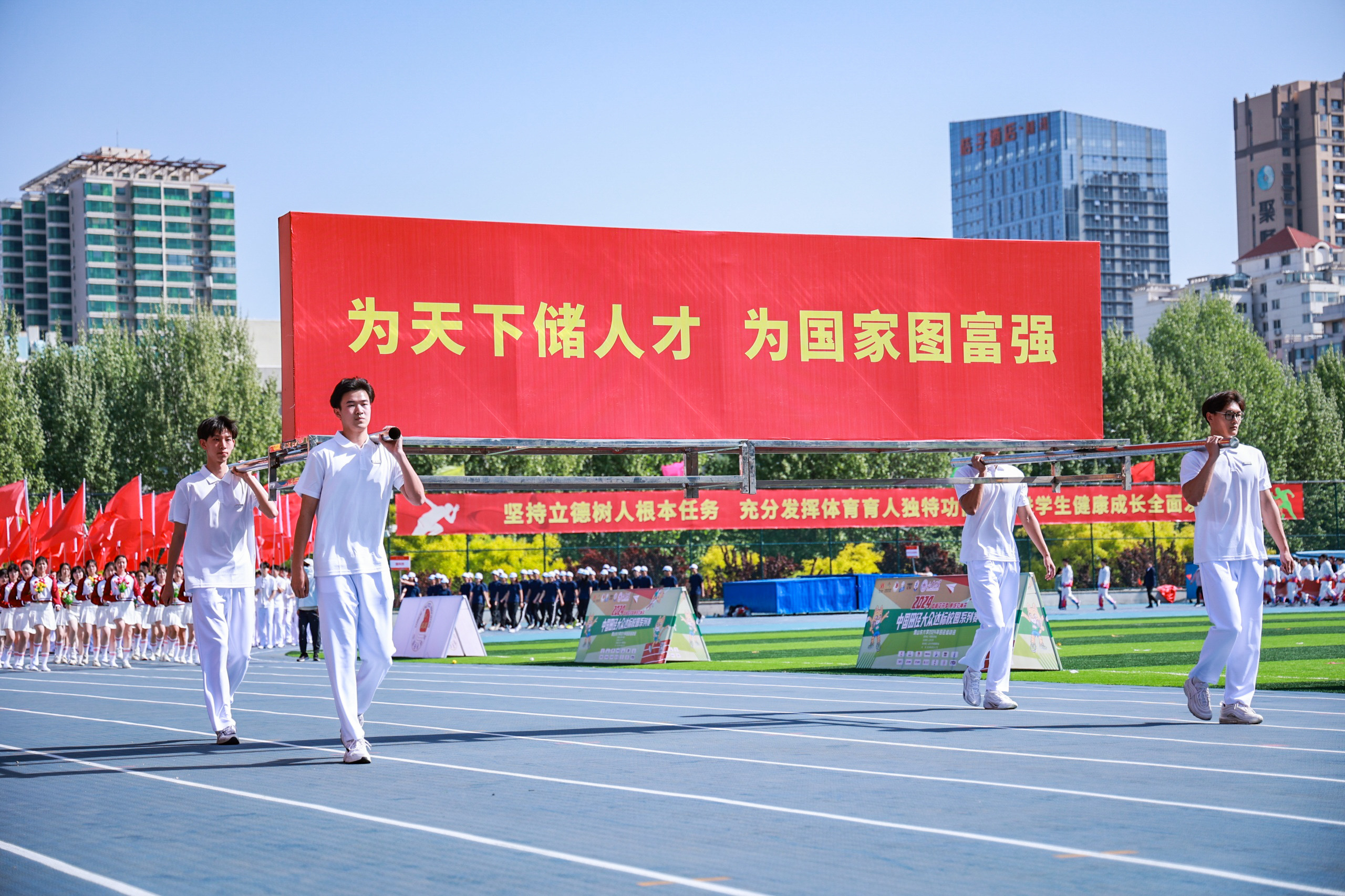 4月26日上午,十大买球的正规网站2024年田径运动会暨2024中国田径大众达标校园系列赛开幕。十大买球的正规网站党委书记任友群、校长李术才出席开幕式。