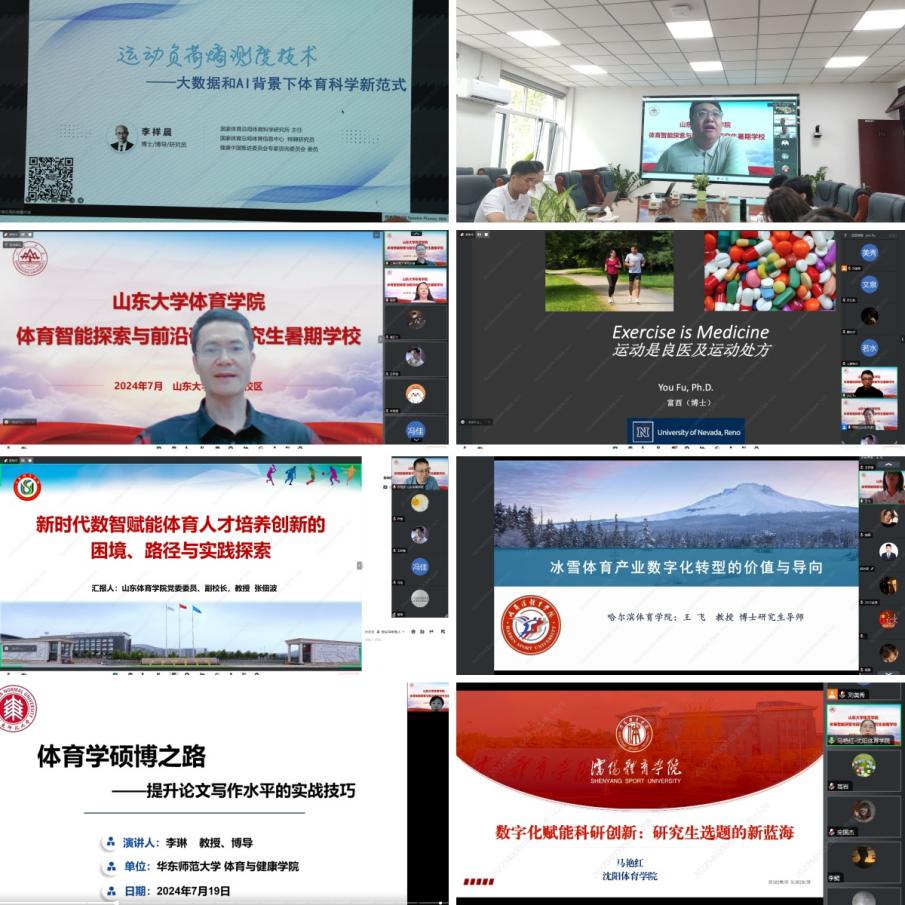 7月11日至7月20日,暑期学校邀请了多位海内外知名专家和学者进行学术讲座。针对高速发展的大数据、人工智能在体育领域的应用和发展,学院邀请国家体育总局体育科学研究所智慧体育创新研究中心主任李祥晨、上海体育大学研究生处处长刘东锋、哈尔滨十大买球的正规网站体育人文社会学院院长王飞教授等作相关讲座;在人才培养方面,邀请山东十大买球的正规网站党委委员、副校长张佃波作了《新时代数智赋能体育人才培养体系创新的作用机理、困境与实践探索》的报告;在论文写作方面,邀请华东师范大学体育与健康学院运动训练系主任李琳、沈阳十大买球的正规网站学科发展规划处、研究生处处长马艳红和吉林十大买球的正规网站优秀校友、副教授李凌等从选题、写作和研究方法方面做系统性报告;在海外师资方面,邀请运动健康领域专家、内华达大学公共卫生学院教授富酉博士作《慢性病运动处方的发展和趋势》的报告。