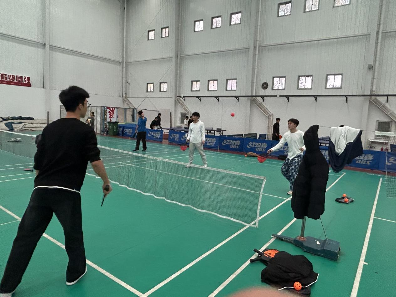 下午的培训内容主要是以实战为主,指导老师在第一环节介绍了对打的一些规则、拿拍姿势以及动作规范,组织同学们在相应的场地进行练习。第二环节主要介绍了单打和双打的有关内容,在指导老师亲身示范下,大家较为熟练地掌握了双打的技术要领和相应的规则。
