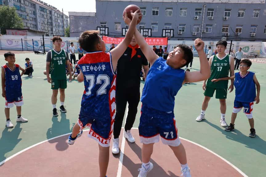 签约仪式之后,前山东男篮队长、现十大买球的正规网站男篮主教练曹振华作为代表向唐王中心小学捐赠儿童篮球器材。十大买球的正规网站男篮队员们与唐王中心小学的学生们展开了一场别开生面的篮球互动,男篮队员们通过现场技术示范和战术指导,为小球员们带来了一场沉浸式的篮球教学。学们热情高涨,篮球的魅力点燃了孩子们的运动激情。