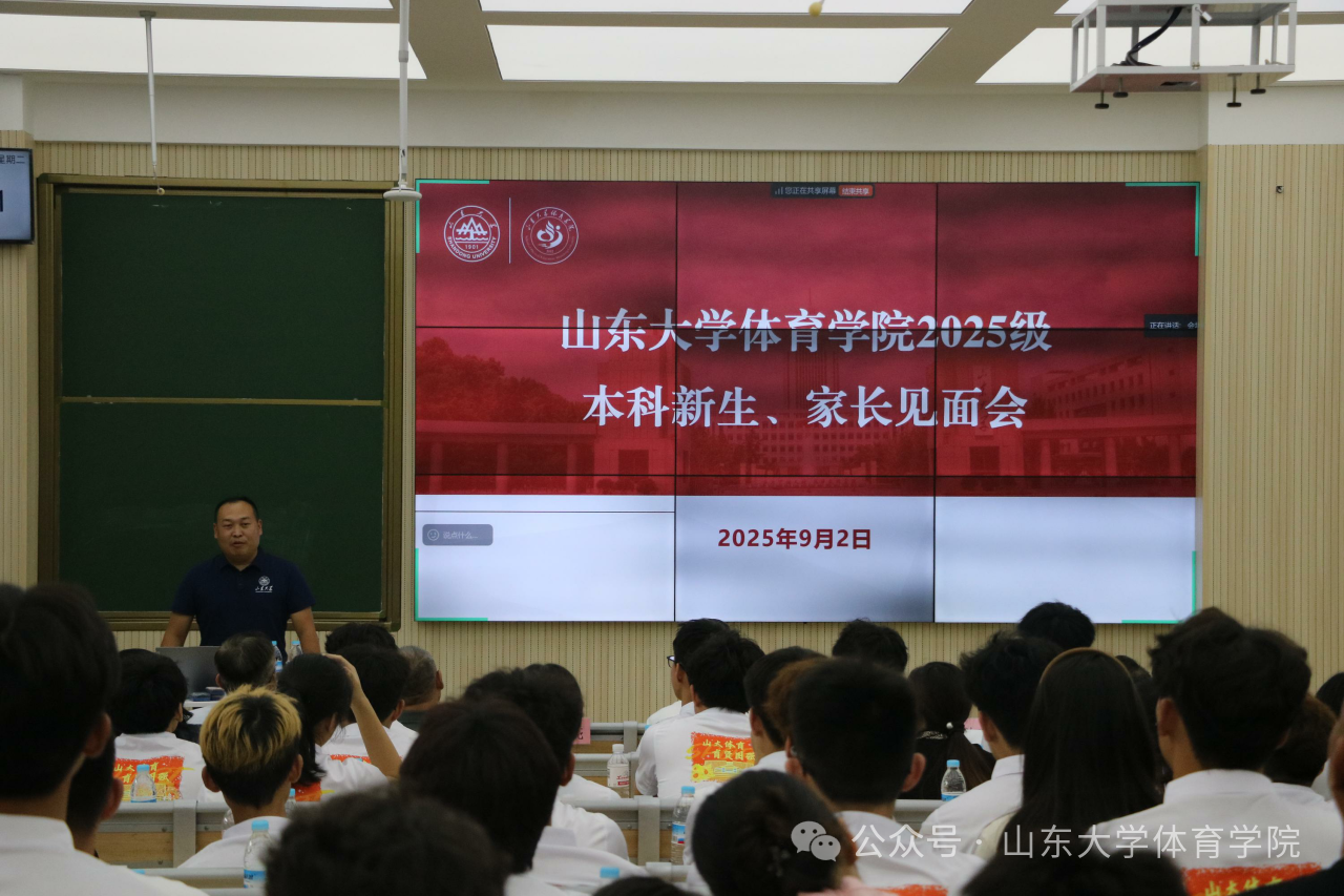 会上,院长孙晋海教授代表全院师生对新生及家长的到来表示热烈欢迎。他围绕山大体育简史、事业发展成效及学院未来规划三个维度展开介绍,帮助新生和家长全方位、深层次地认识山大体育。