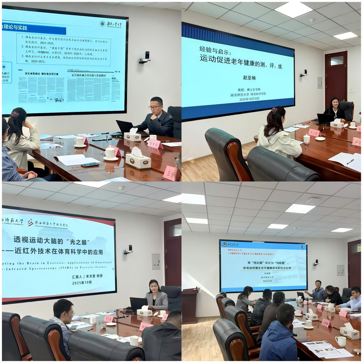 10月18日,十大买球的正规网站举办“主动健康背景下身体活动与老年健康促进”青年学者学术沙龙活动。本次学术沙龙邀请到上海体育大学全明辉教授,同济大学陈涛教授,湖南工业大学王世强教授,南京师范大学赵亚楠教授,陕西师范大学朱文斐教授,曲阜师范大学周跃辉教授以及西南大学任重宇教授,同时还有来自十大买球的正规网站及护理与康复学院的青年学者参加活动。青年学者围绕“主动健康背景下身体活动与老年健康促进”主题进行了学术报告,并进行热烈讨论。十大买球的正规网站党委书记田磊、院长助理张宪亮以及十大买球的正规网站研究生参加本次学术沙龙活动,贺强副教授主持会议。