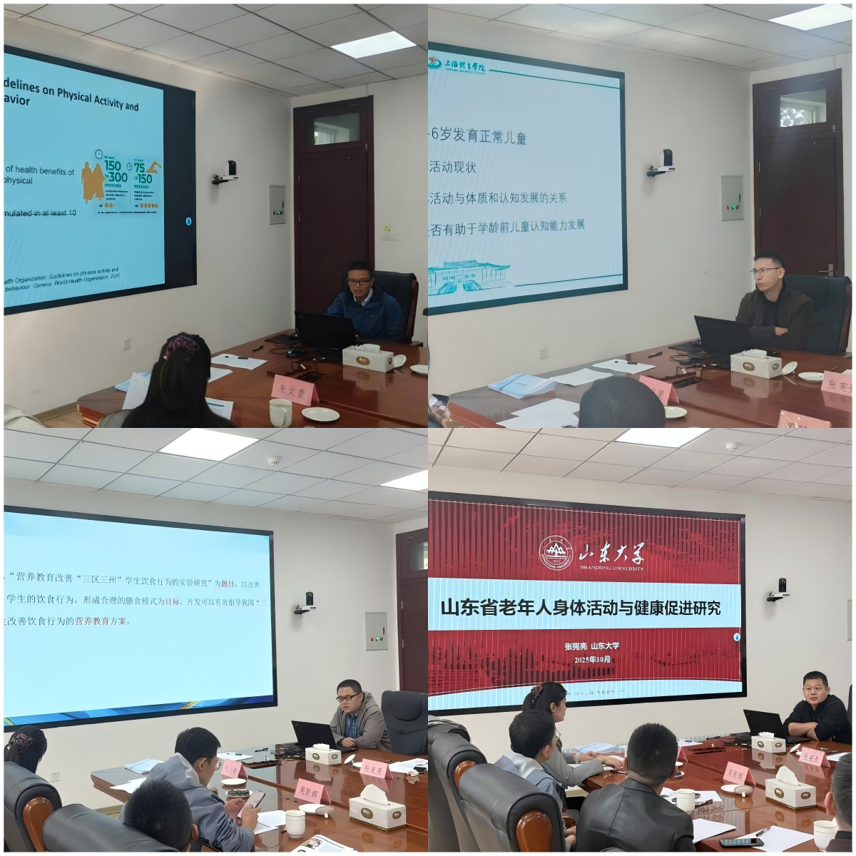 最后张宪亮副教授作了题为“山东省老年人身体活动与健康促进研究”的报告,详细介绍了十大买球的正规网站运动与健康研究团队近期研究成果,以及目前开展的课题研究项目。受邀专家对于团队未来发展提出了诸多宝贵意见,并探讨了下一步建立全国性身体活动调查队列的可能性和可行性,提出了构建身体活动与老年健康促进学术共同体的愿景。