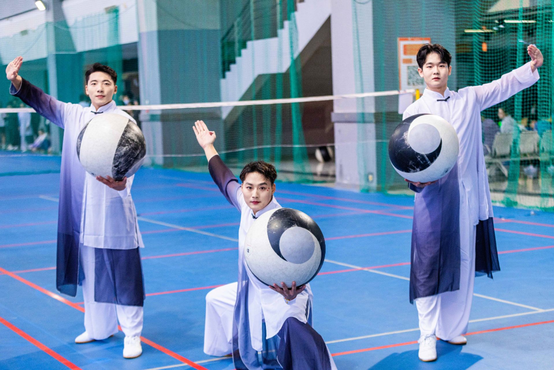 对抗赛中,山大队员们秉持“以柔克刚、攻防有度”的太极理念,展现出超强的应变能力与竞技水平:陈卓在甲B女子单人太极球对抗项目中过关斩将,摘得全国季军;张娜娜、宋瑞在甲A女子双人太极球对抗赛中奋勇拼搏,最终获得全国第五的优异成绩;王泽璇、王成瑞在甲B男子单人太极球对抗中表现出色,携手获得全国并列第五。