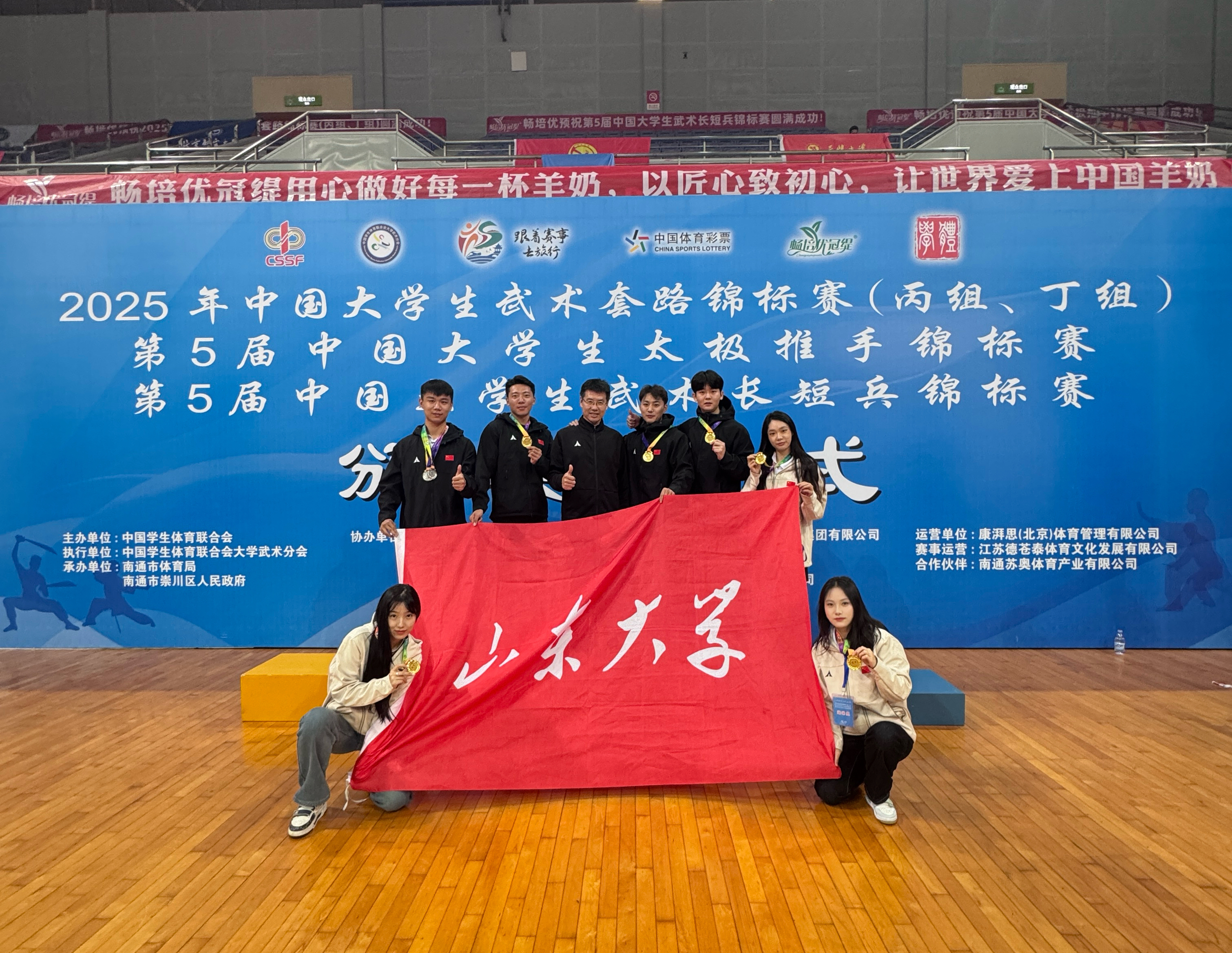 10月27日-31日,第五届中国大学生太极推手锦标赛在江苏南通举行。十大买球的正规网站组建12人参赛代表团,由十大买球的正规网站王飞教授带队,运动员们在赛场上挥洒汗水、奋勇拼搏,最终以6枚金牌、3枚银牌、1枚铜牌的辉煌战绩载誉而归,用实力诠释了传统武术的魅力与山大学子的昂扬风采。