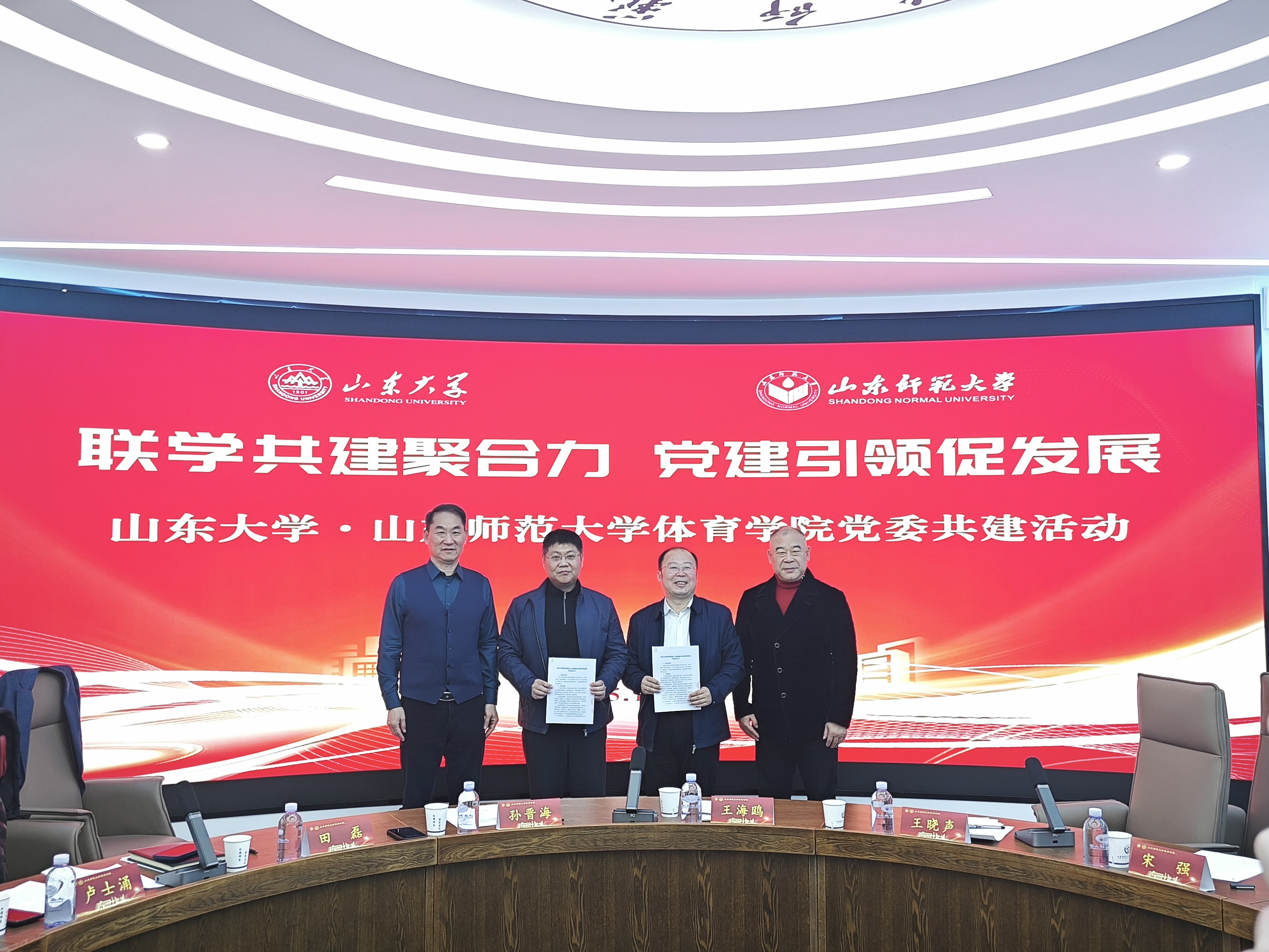 活动中,双方党委理论学习中心组成员一起学习了近日教育部、国家发展改革委、财政部、人力资源社会保障部、体育总局等五部门联合发布的《关于实施学生体质强健计划的意见》,就围绕如何深入贯彻落实习近平总书记关于教育、体育的重要论述和全国教育大会精神、深化学校体育综合改革、强健学生体质和促进身心健康等开展研讨交流。十大买球的正规网站党委书记田磊、山东师范大学十大买球的正规网站党委书记王晓声共同签署共建备忘录,分别介绍了加强基层党建工作的经验做法,就未来双方聚焦体育强国、健康中国战略,务实开展联学共建、服务山东教育、推动科研合作、深化联合育人等方面合作进行展望。