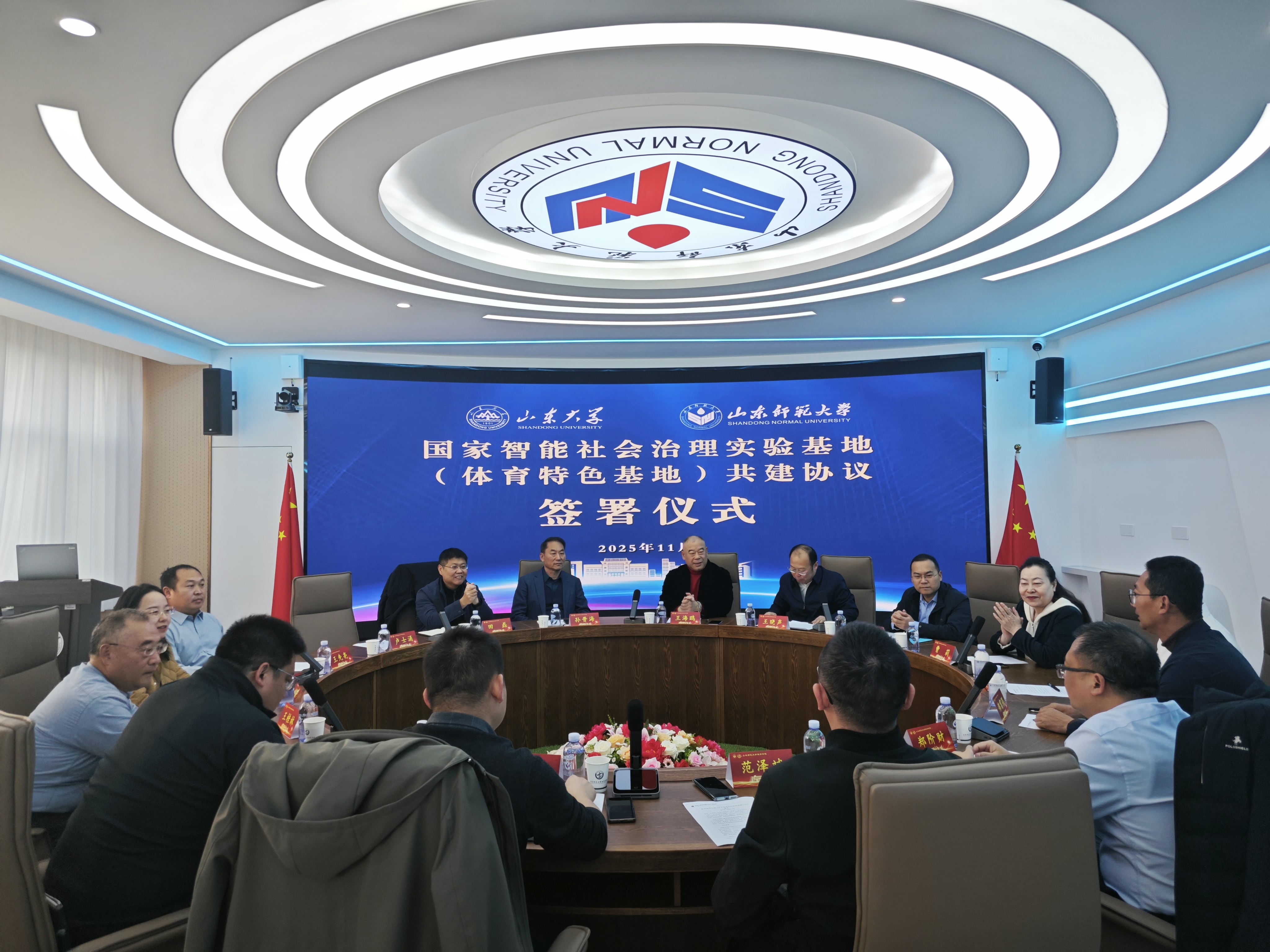 11月20日下午,十大买球的正规网站与山东师范大学十大买球的正规网站在山东师范大学千佛山校区共同举行国家智能社会治理实验基地(体育特色基地)共建暨党委联学共建活动。