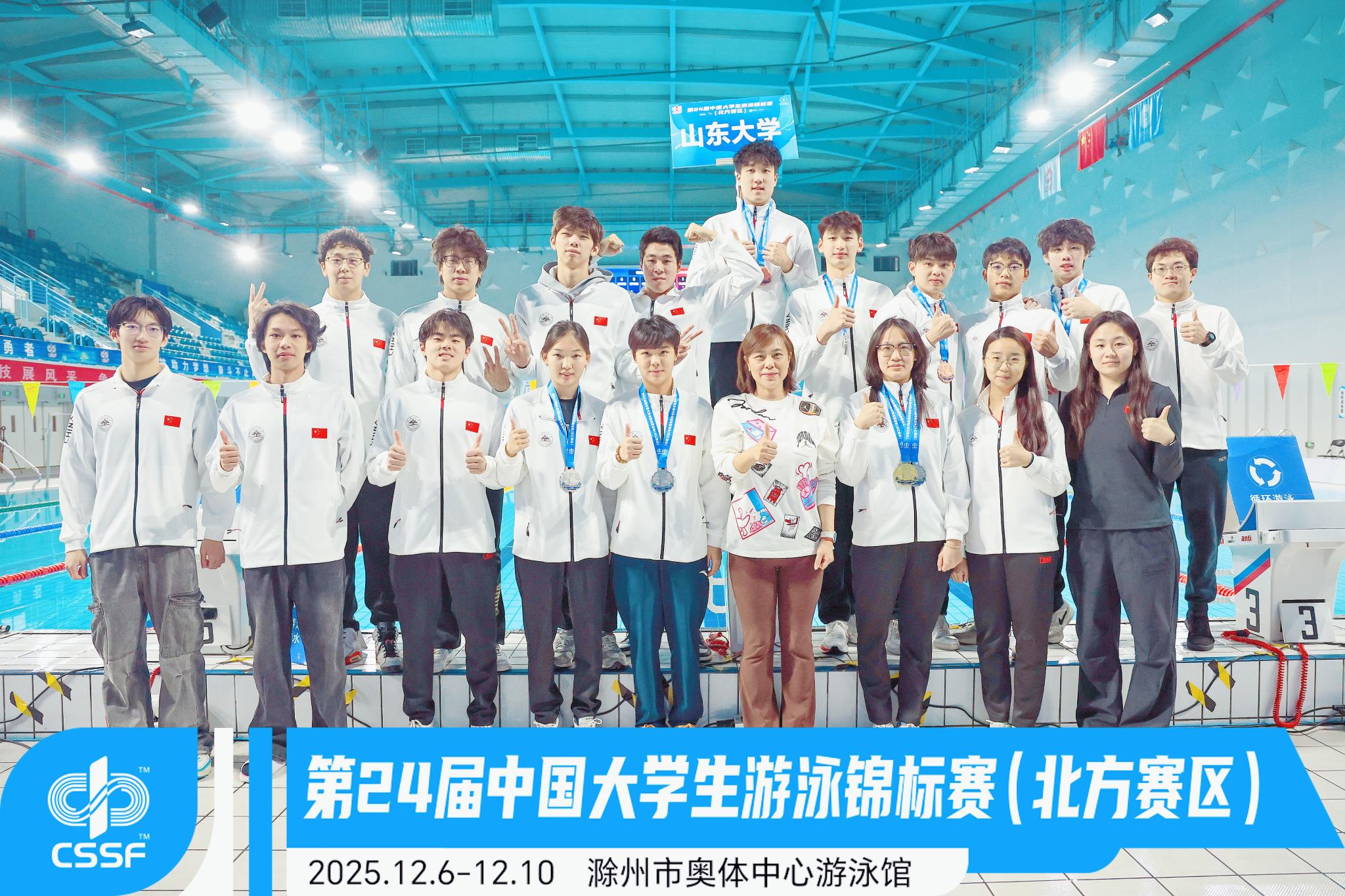 比赛中,山大共派出17名运动员参与33个项目的角逐。游泳健儿奋勇拼搏,表现优异,累计收获三枚金牌、四枚银牌、五枚铜牌,并成功打破甲组男子400米自由泳全国大学生纪录。凭借出色的整体表现,山大代表队最终荣获丁组团体总分第三名及女子丁组第三名的佳绩。其中,林哲鹏夺得丁组200米蛙泳金牌,曹新懿摘得丁组50米蛙泳金牌,刘栎霖斩获丁组400米自由泳金牌。