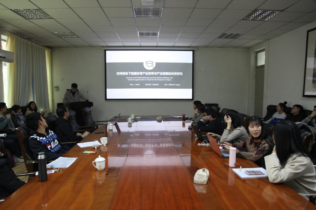 王志文作了题为《全民健身联席会议的形成机理与功能实现》的专题报告,对全民健身联席会议在各地的发展现实进行了分析,并且探讨了全民健身联席会议的多重形成机理以及其对政府、社会公众、社会组织所带来的有益功能。李海杰作了《空间视角下我国体育产业效率与产业集聚的关系研究》的专题报告,运用了数据包络分析、空间滞后模型和空间误差模型对我国体育产业空间集聚与产业效率的关系进行了实证研究,对我国体育产业布局规划和区域经济协同发展起到了实践指导的作用。邢月作了题为《基于 IPA 分析山东省农村公共体育服务绩效评价与实证研究》的报告,以服务质量模型为参考,设计指标体系,调查了山东省 17 地市农村公共体育服务绩效,为农村公共体育服务发展提供测量工具。李雪娇《跑台运动激活 PI3K/Akt 信号通路减APP/PS1小鼠 Aβ 沉积》的报告,通过对 APP/PS-1 小鼠进行 12 周跑台运动,观察海马 Aβ 沉积情况等,揭示了运动能够促进 Aβ 降解,在理论上为阐 明运动预防和减缓 AD 发病提供了一定的依据。谢韶峰作了题为《体育特色小镇品牌标识建设水平评价研究》的报告,运用了德尔斐法、层次分析法以及实地调查法等分析了我国体育特色小镇品牌标识培育现状,在此基础上构建体育特色小镇品牌标识建设水平评价指标体系。在讨论交流环节中,大家畅所欲言,学术氛围浓厚。